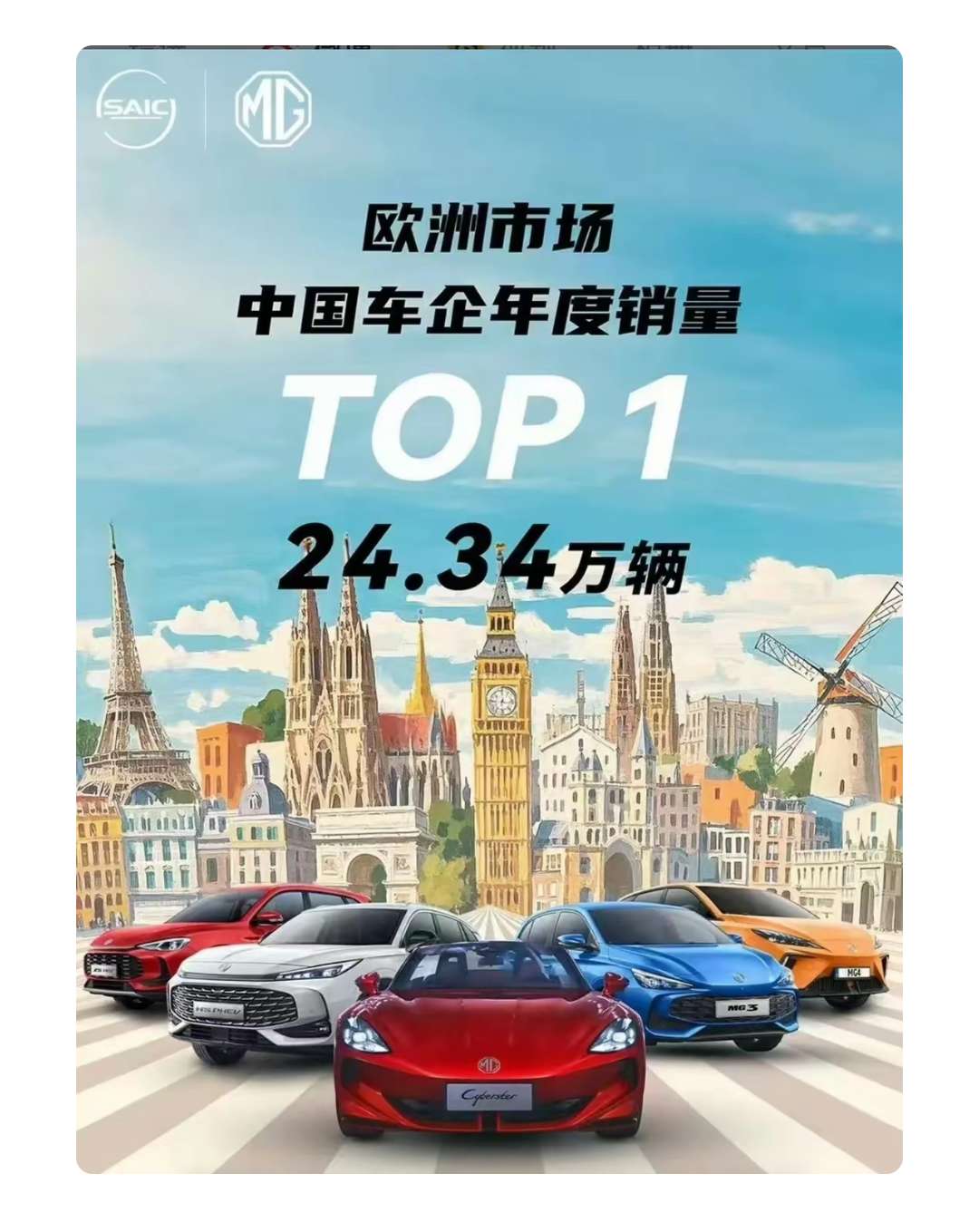 上汽集团还披露,2024年,名爵汽车在欧洲市场销量高达24.34万辆,是销量最高的中国车企。