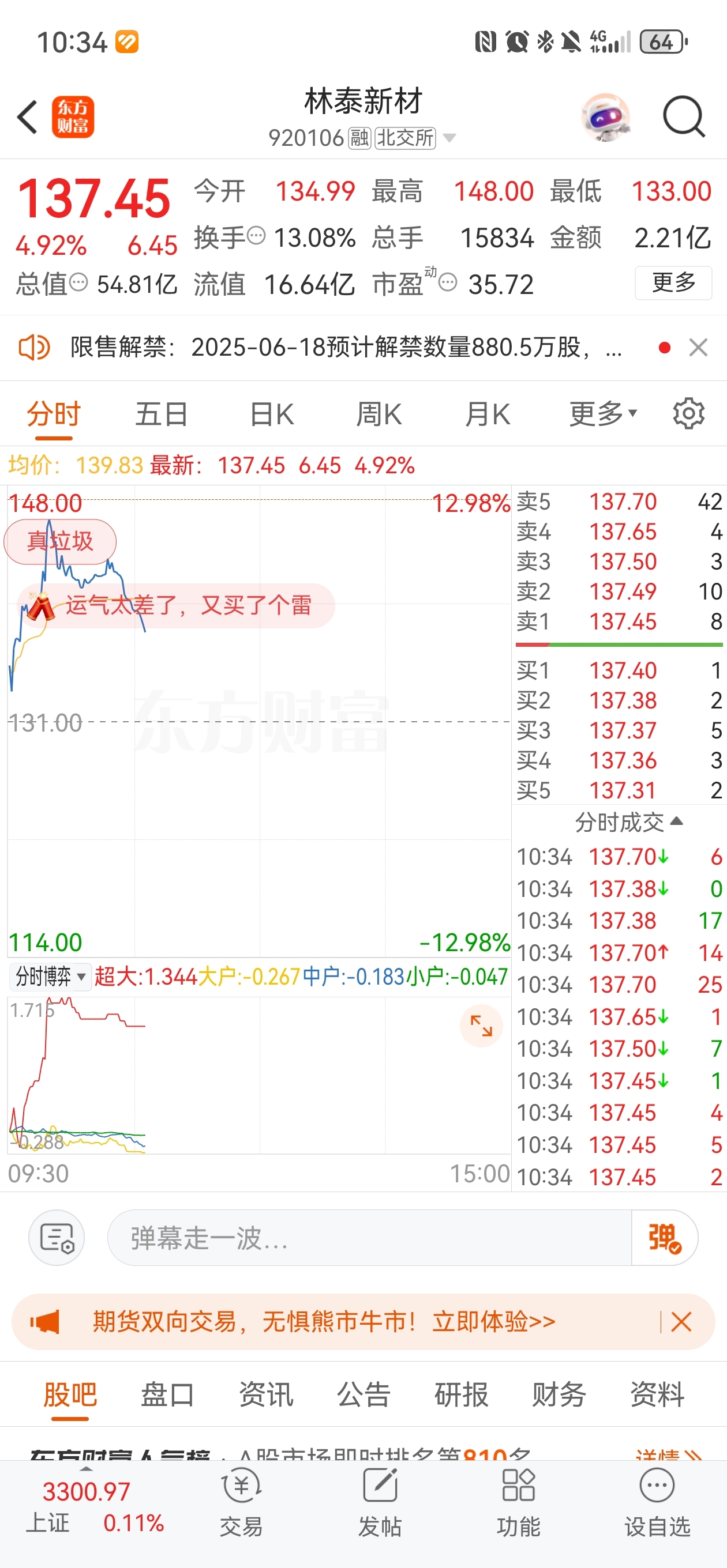 温馨提示: 1.根据《证券法》规定,禁止编造、传播虚假信息或者误导性信息,扰乱证券市场;2.用户在本社区发表的所有资料、言论等仅代表个人观点,与本网站立场无关,不对您构成任何投资建议。用户应基于自己的独立判断,自行决定证券投资并承担相应风险。《东方财富社区管理规定》