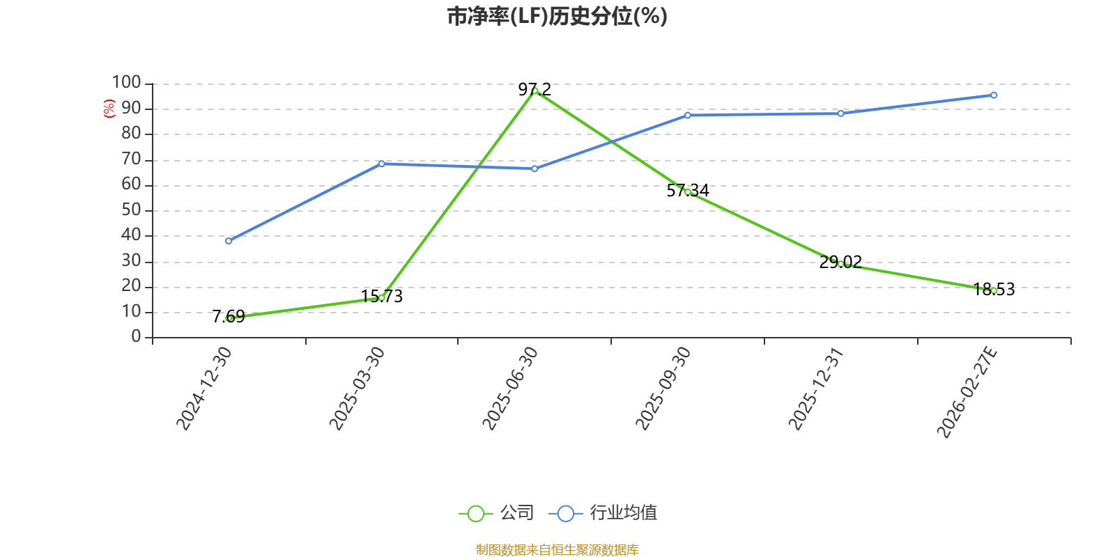 市盈率、市净率为负时,不显示当期分位数,会导致折线图中断。