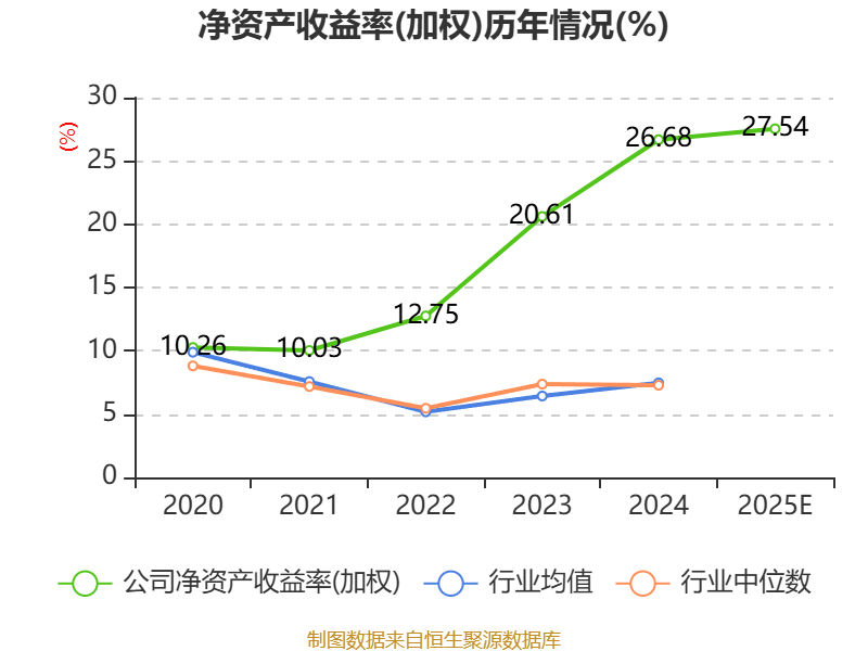 数据显示,2025年公司加权平均净资产收益率为27.54%,较上年同期上升0.86个百分点。