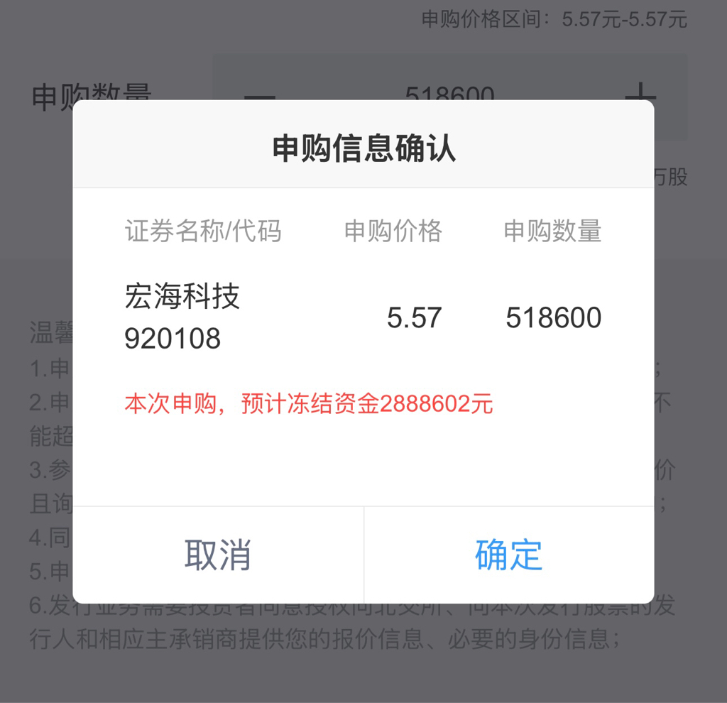 $宏海科技(SZ920108)$ 能不能中500股啊,求求了