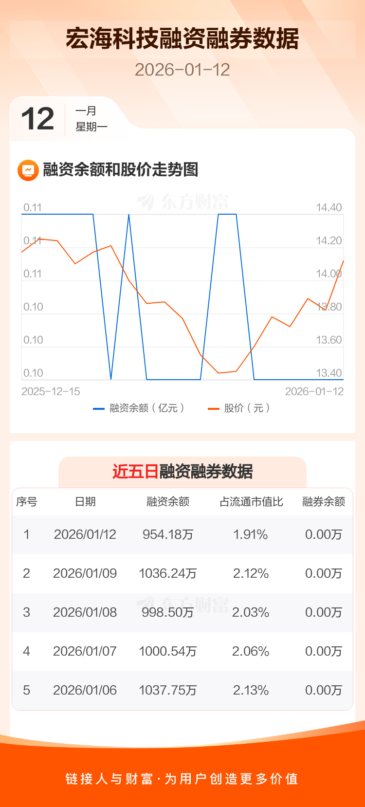 交易所最新数据显示,宏海科技于2026年1月12日获融资买入203.35万元,融资偿还285.40万元,当日融资净偿还82.05万元。目前,该股融资余额954.18万,占流通市值比例为1.91%。