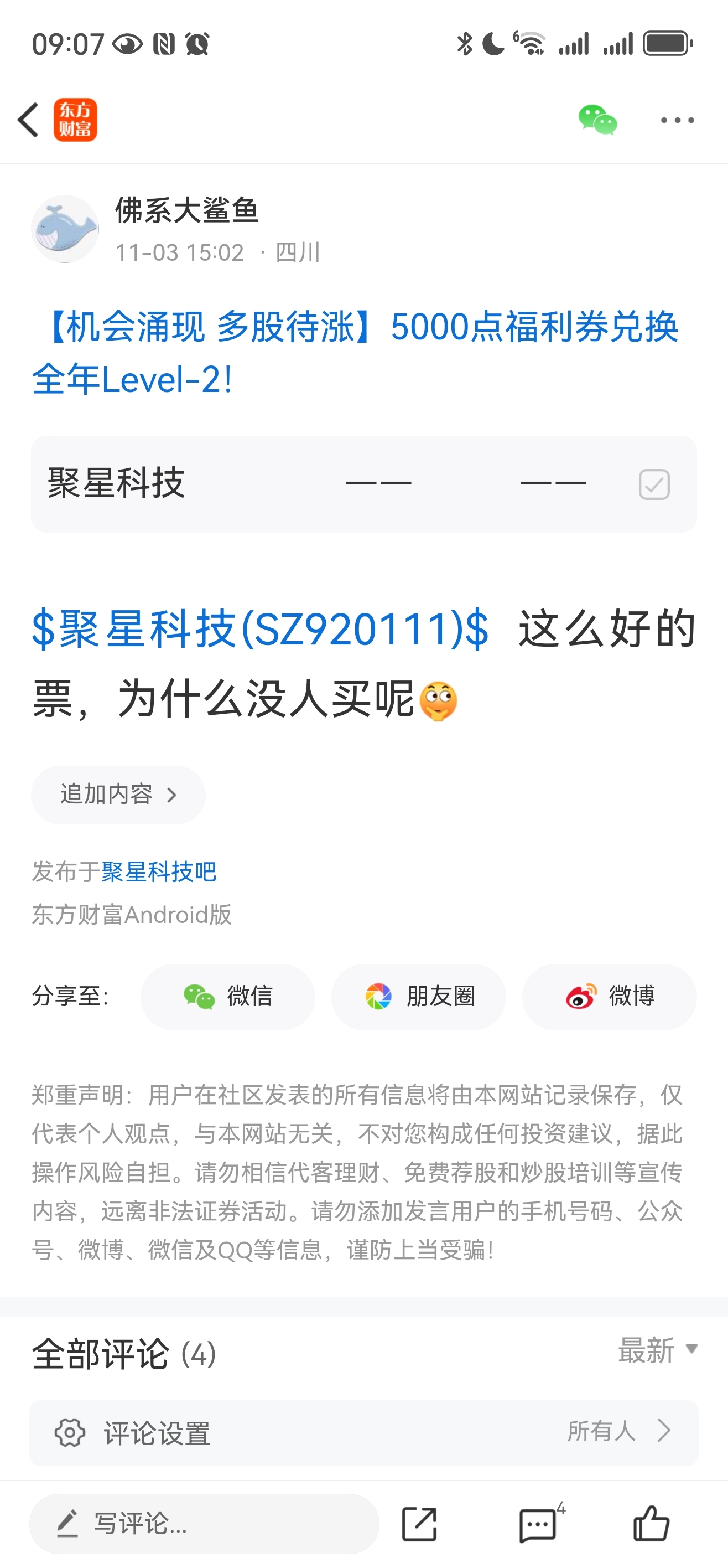 温馨提示: 1.根据《证券法》规定,禁止编造、传播虚假信息或者误导性信息,扰乱证券市场;2.用户在本社区发表的所有资料、言论等仅代表个人观点,与本网站立场无关,不对您构成任何投资建议。用户应基于自己的独立判断,自行决定证券投资并承担相应风险。《东方财富社区管理规定》