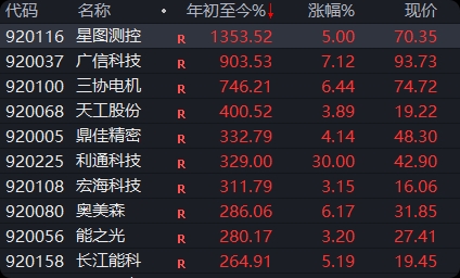 $星图测控(SZ920116)$ $广信科技(SZ920037)$ $三协电机(SZ920100)$ 今年北交至今涨幅前十