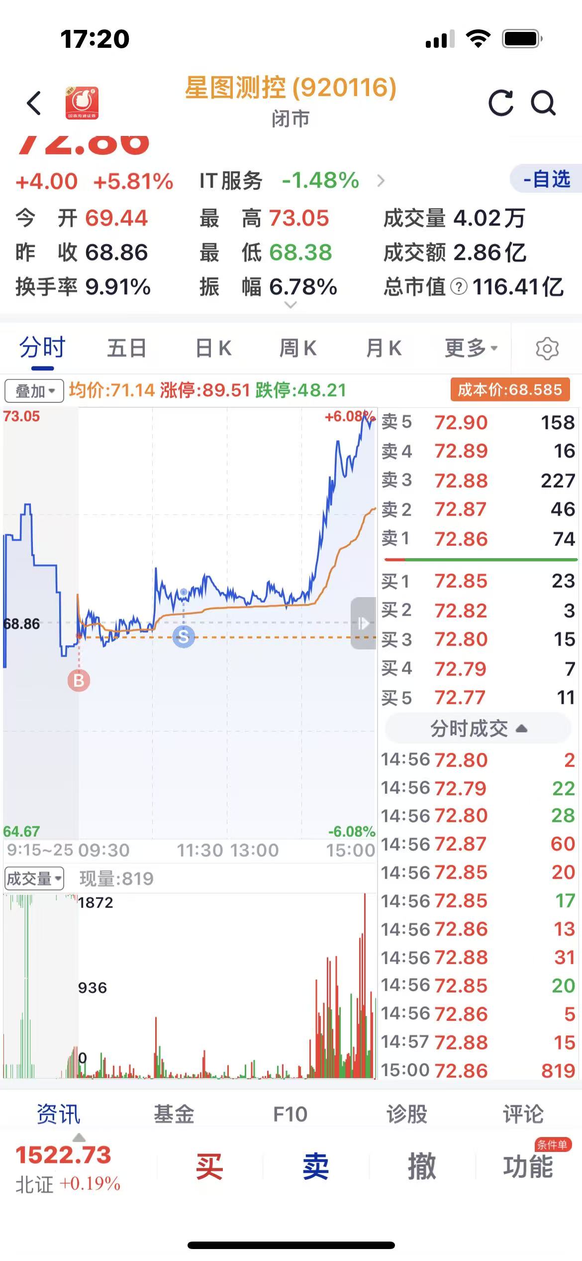 上午68.62买了200股,69.48给T出去了,准备下午接回来