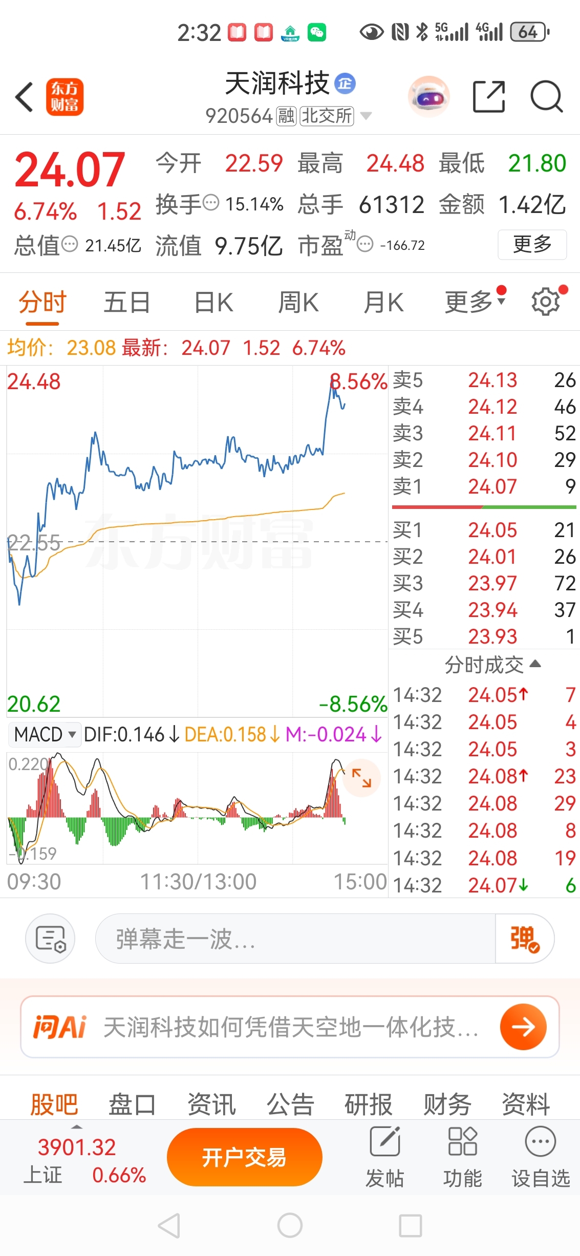 你北交所商业航天小弟天润科技都涨了7个点,加油,一飞冲天