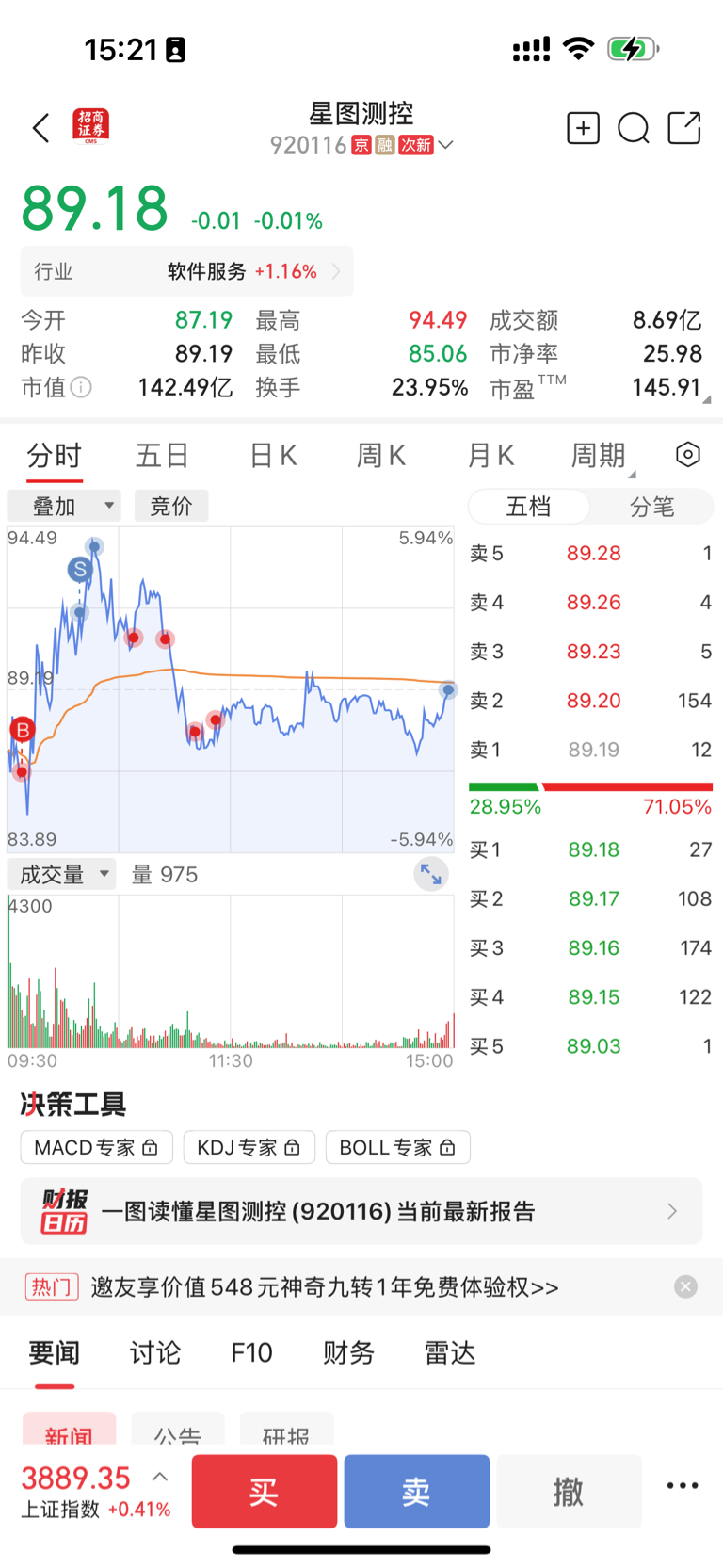 $星图测控(SZ920116)$ 看见贴吧说做T很贱,我昨天96追进来买了70w,收盘亏的我头皮发麻,如果不做T等着解套要到猴年马月了,只要大资金给机会你不做就有别人做,损失的是自己