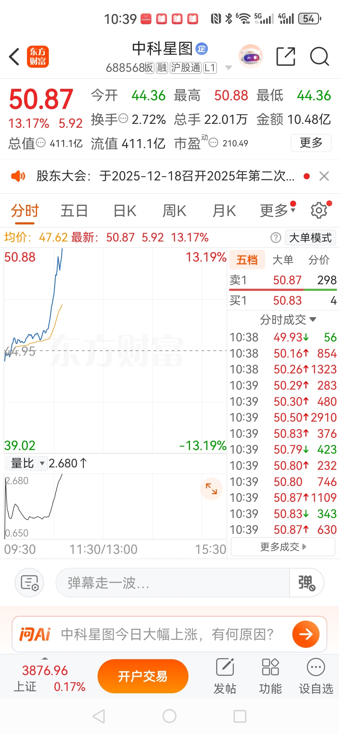 你老爸中科星图涨了13个点啦,加仓星图测控5000股,看好你最靓的仔,随时一飞冲