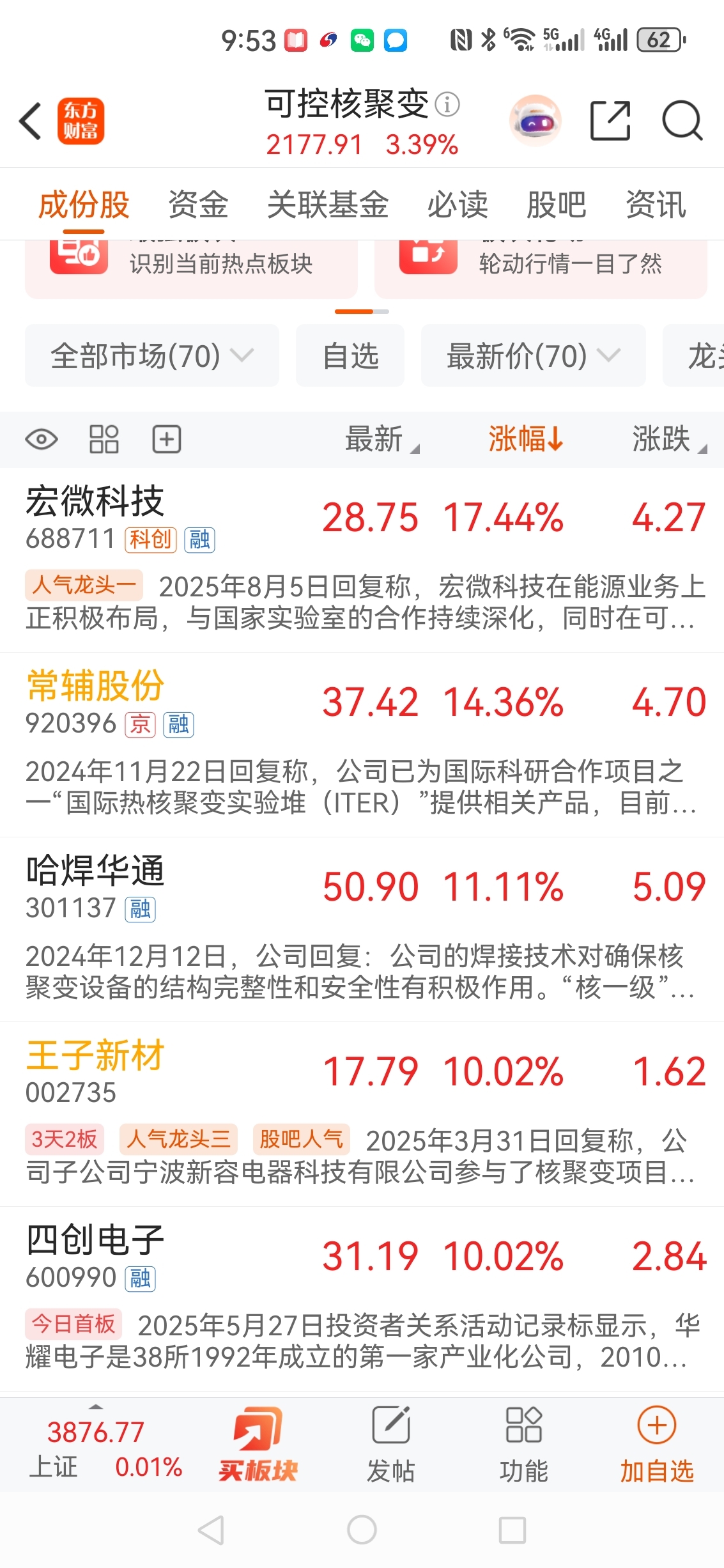 可核聚变,商业航天今天上午掀起涨停潮,见下图