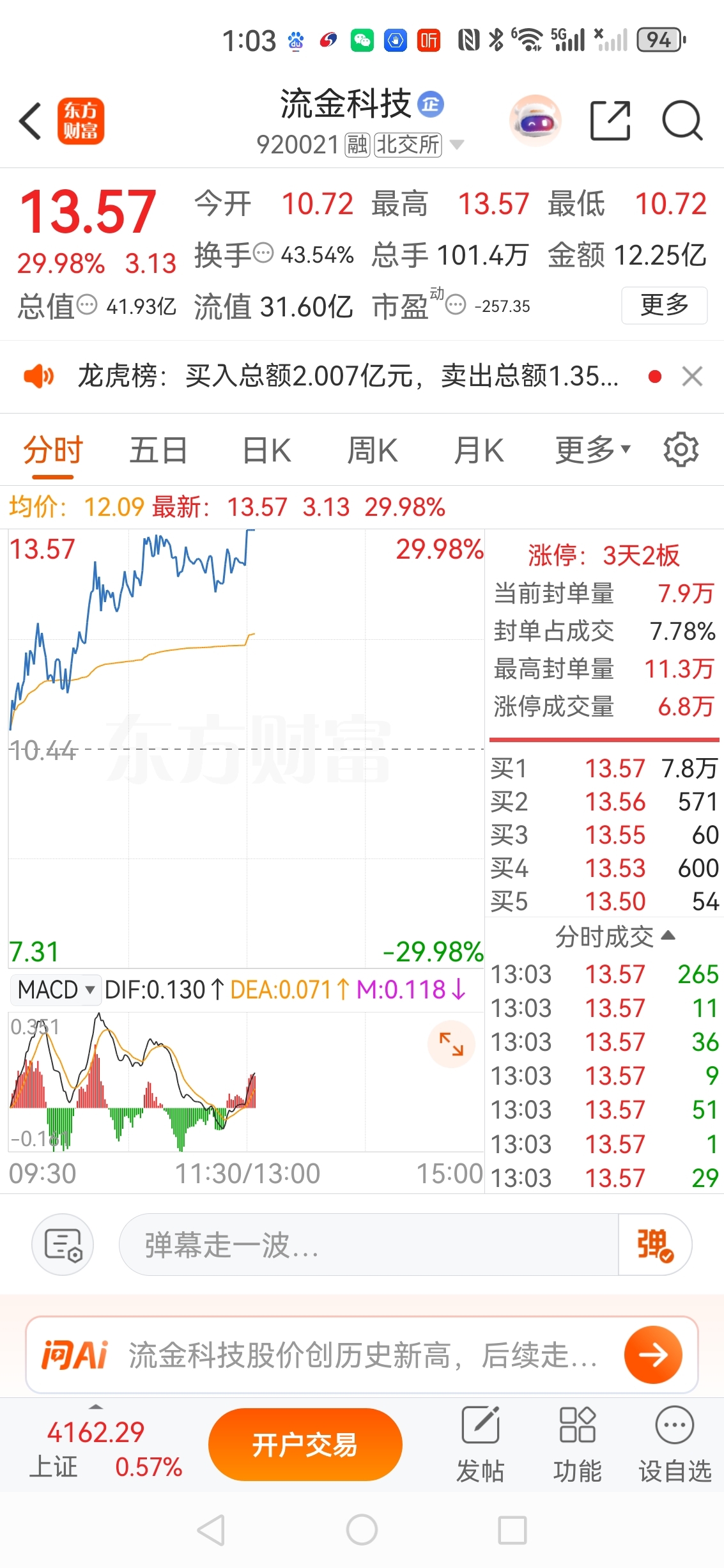 北交所商业航天龙头股流金科技下午开盘涨停板30%,商业航天卷土重来掀起涨停潮,加
