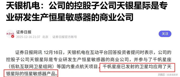 星敏感器:公司为千帆星座供应恒星敏感器产品
