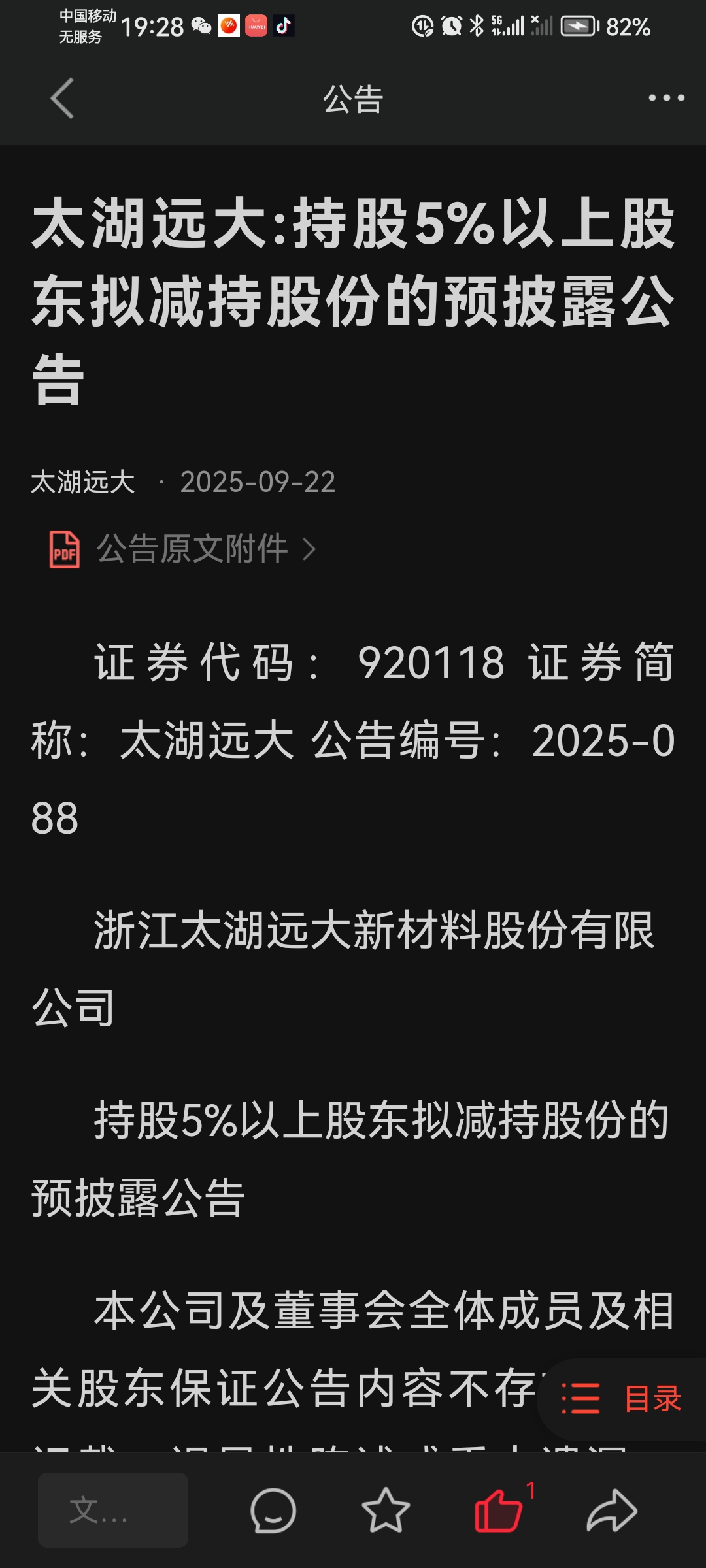 $太湖远大(SZ920118)$ 怪不得今天资金抢跑破位下跌,厡因找到了。