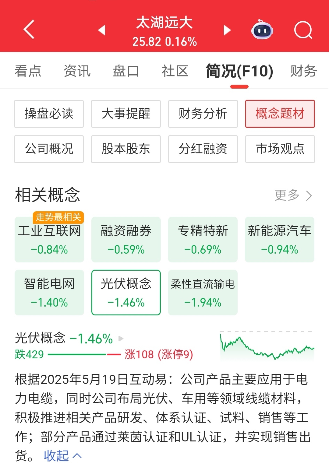 收盘后光伏大利好来了,太湖远大其它所有证券软件全部都有光伏概念,最小市值,五天均