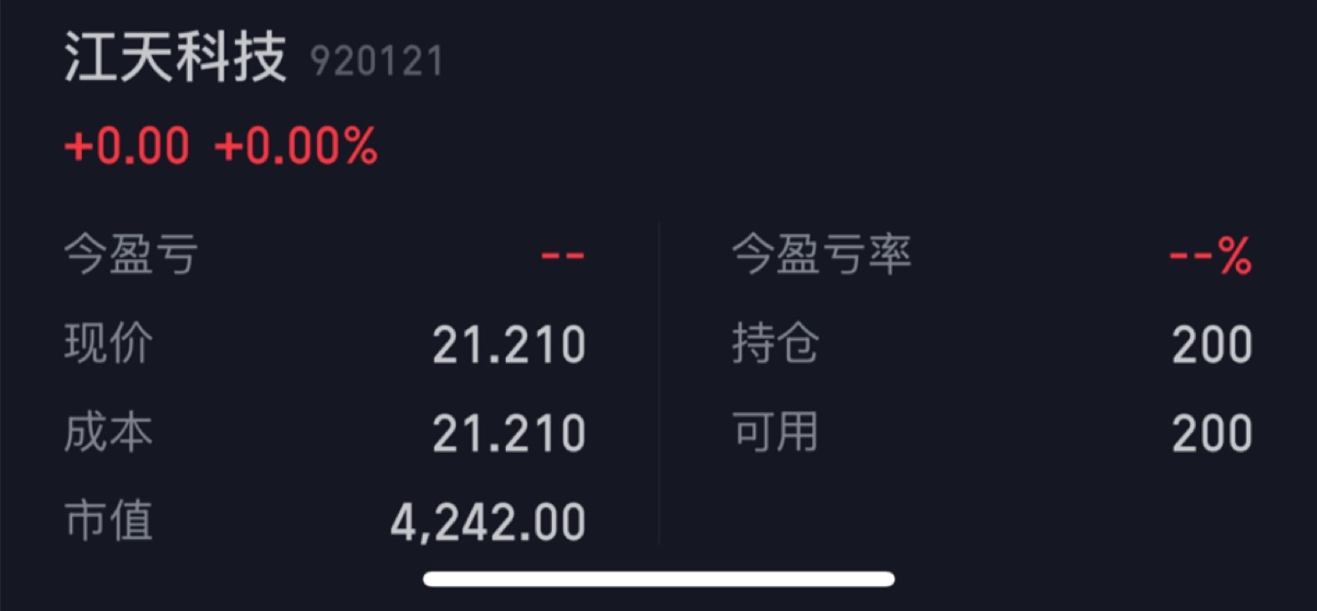 $江天科技(SZ920121)$ 打了789W、居然也有200股、运气可以