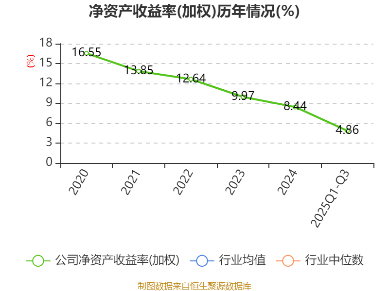 盈利能力方面, 2025年前三季度公司加权平均净资产收益率为4.86%,同比下降0.47个百分点。公司2025年前三季度投入资本回报率为4.42%,较上年同期上升0.32个百分点。