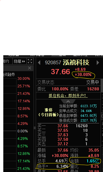 泓禧科技,流通市值27.87亿(南特科技是14.4亿),才成交1.6亿,就已经封