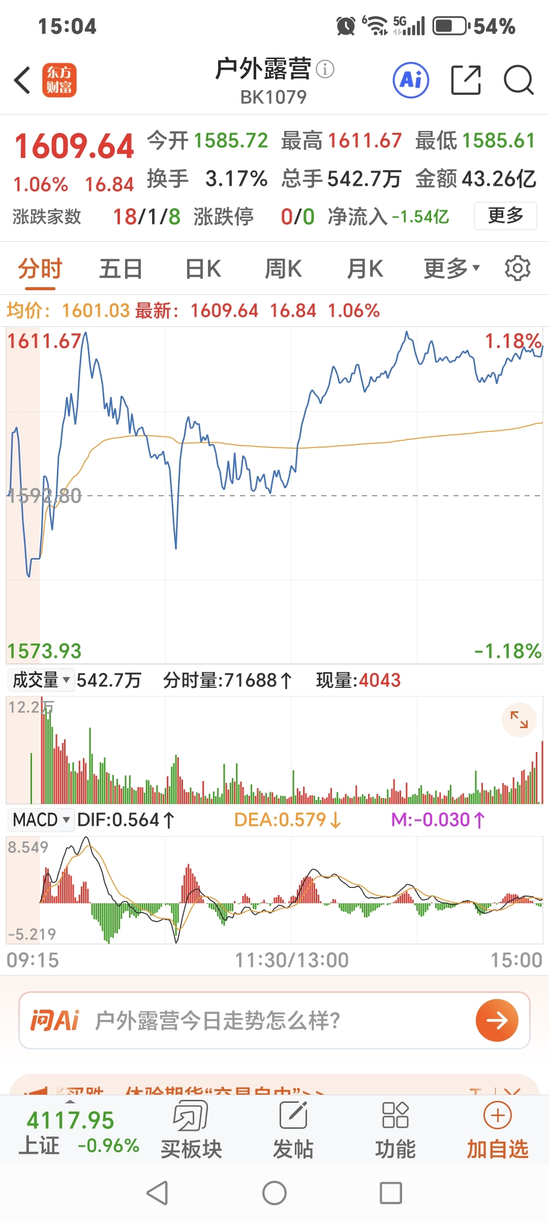 户外露营板块大涨1%
