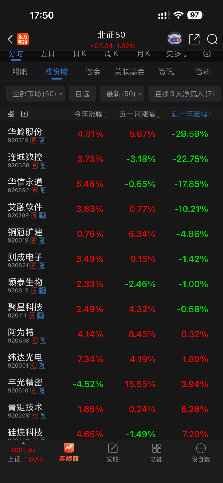 $华岭股份(SZ920139)$ 北证 50 近一年涨幅榜第一