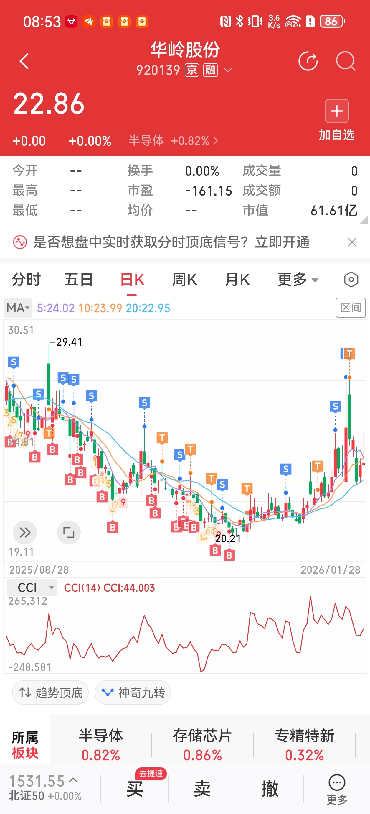 一周没操作华玲了,今天准备动手了。推荐买点22.35,21.70。