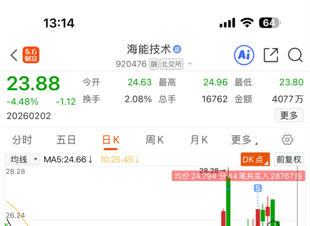 还要跌!看我的海能技术,早盘卖了华领,进了海能