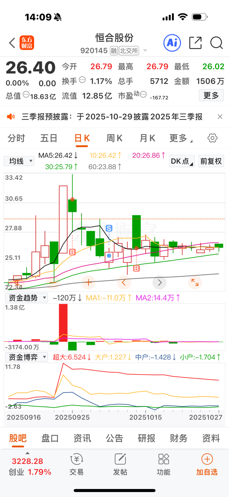 $恒合股份(SZ920145)$ 就我减仓后爽快了一两天,太墨迹了