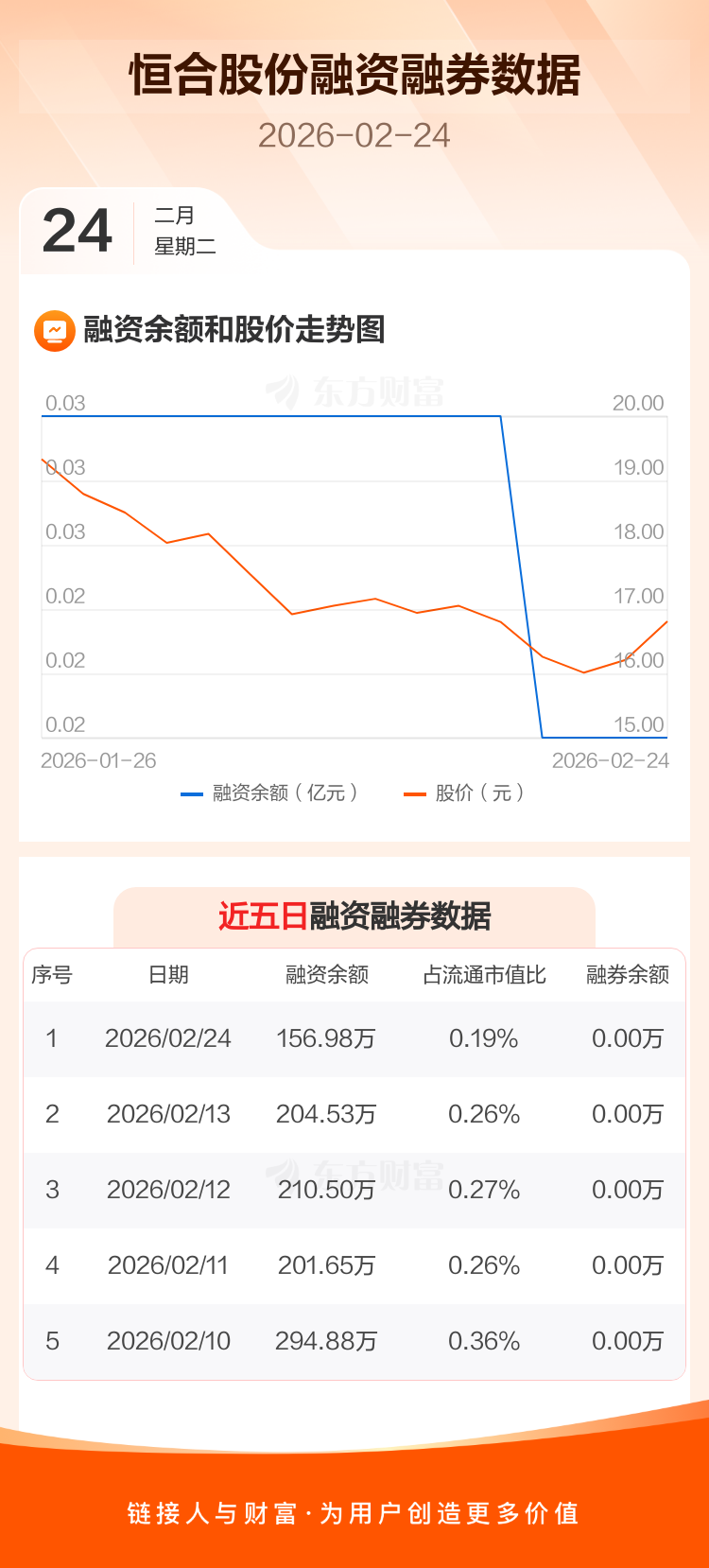 交易所最新数据显示,恒合股份于2026年2月24日获融资买入9.12万元,融资偿还56.66万元,当日融资净偿还47.55万元。目前,该股融资余额156.98万,占流通市值比例为0.19%。
