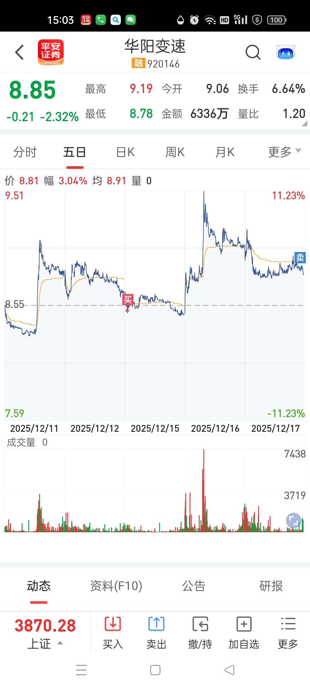 $华阳变速(SZ920146)$ 挣点小钱跑了,错在冲高时看好不出,下次记住冲高是卖点一定不看好