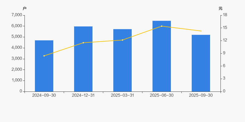 截至2025年9月30日,公司最新总股本为7501.56万股,其中流通股本为6192.32万股。户均持有流通股数量由上期的6887股上升至1.19万股,户均流通市值17.01万元。
