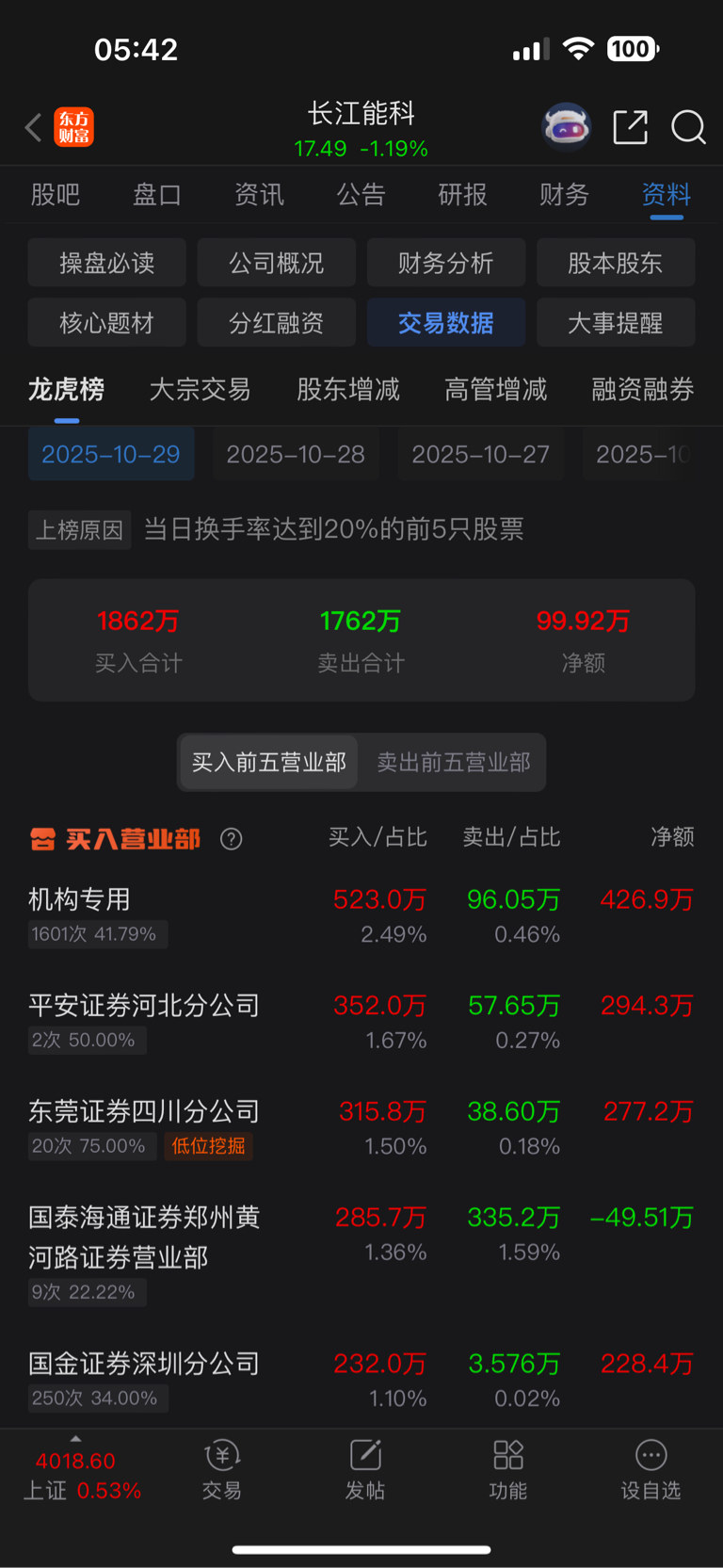 $长江能科(SZ920158)$ 从10月29号(最后龙虎榜)到现在一直阴跌,不止是长江,新股上市几乎都是高开低走。发的快+ "哄抬开盘价"$北证50(SZ899050)$ 基本和牛市背道而驰重灾区,而且持股不算市值至今不改,雪上加霜