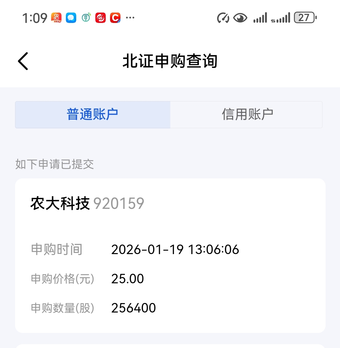 $农大科技(SZ920159)$ 申购了641个,那就听天由命吧,就当少赚了400回购钱