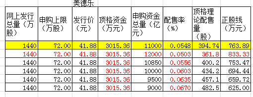 美德乐周三申购,网上申购总数1440万,发行价41.88,顶格72万股资金301