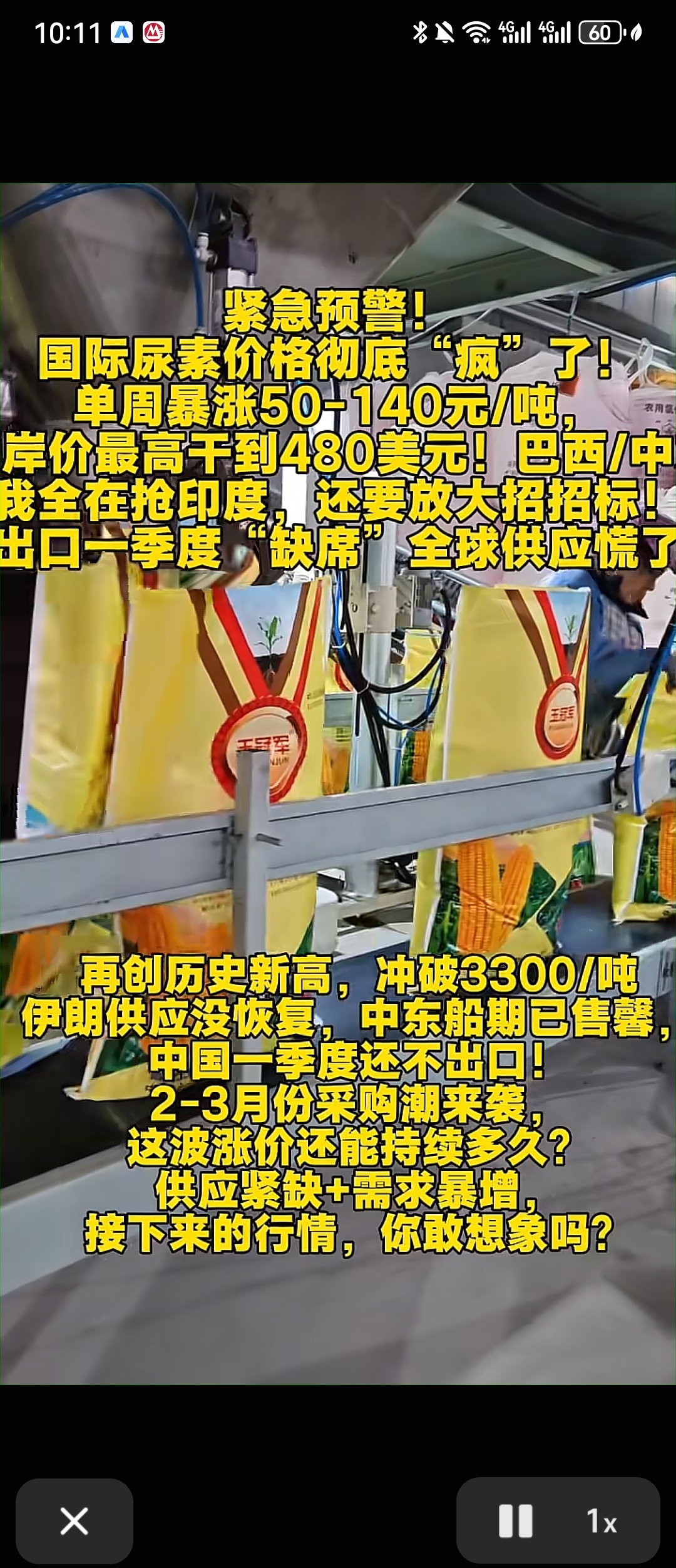 网上都说肥料出口供不应求,涨了不少,春节前现在厂家观望状态,不知道农大走势咋就那