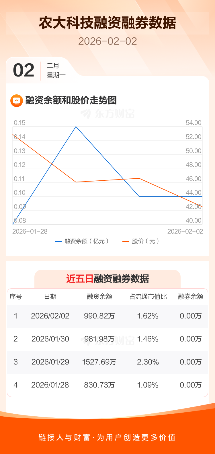 交易所最新数据显示,农大科技于2026年2月2日获融资买入281.65万元,融资偿还272.81万元,当日融资净买入8.84万元。目前,该股融资余额990.82万,占流通市值比例为1.62%。