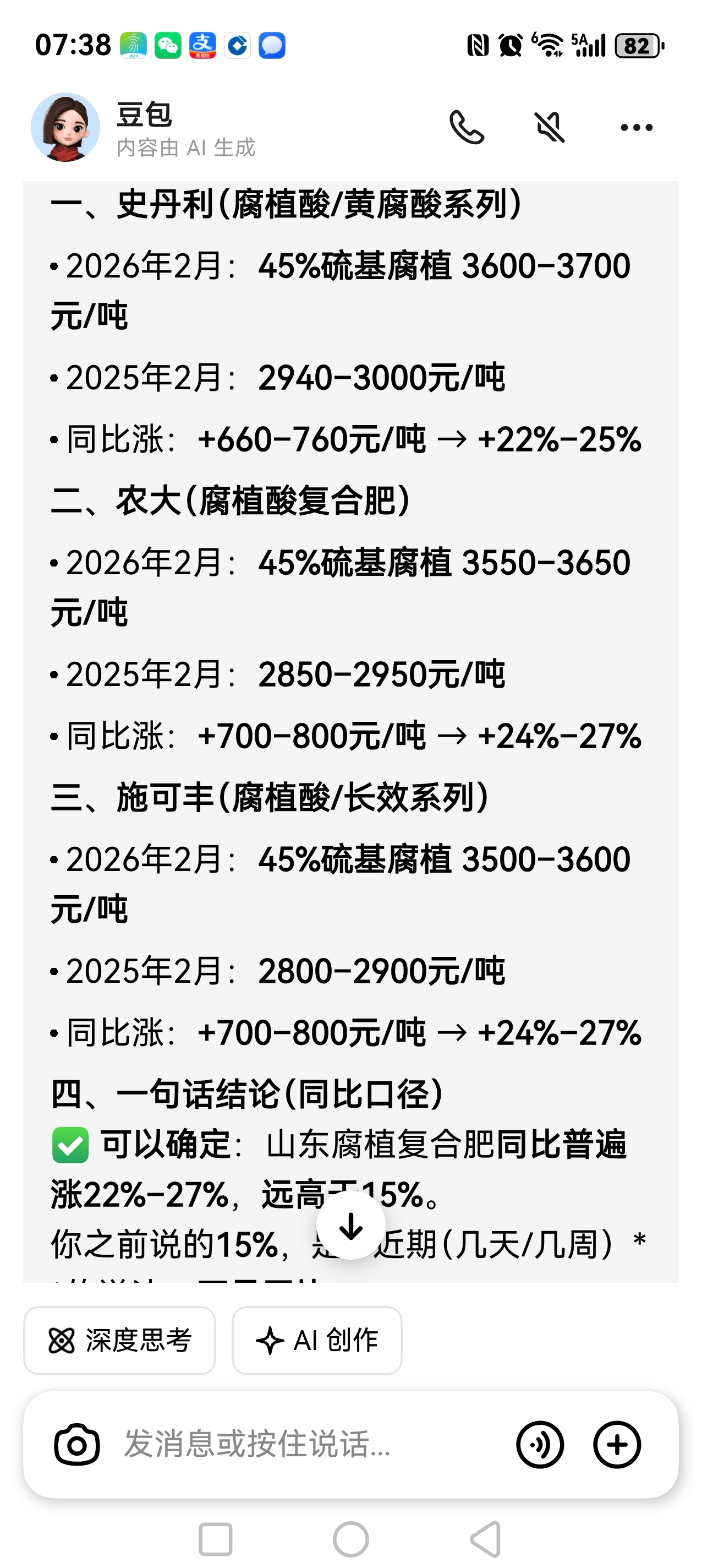 $农大科技(SZ920159)$ 农大的腐植酸复合肥同比涨幅超过百分之22至百分之27,远超可比企业的百分之15的涨幅。