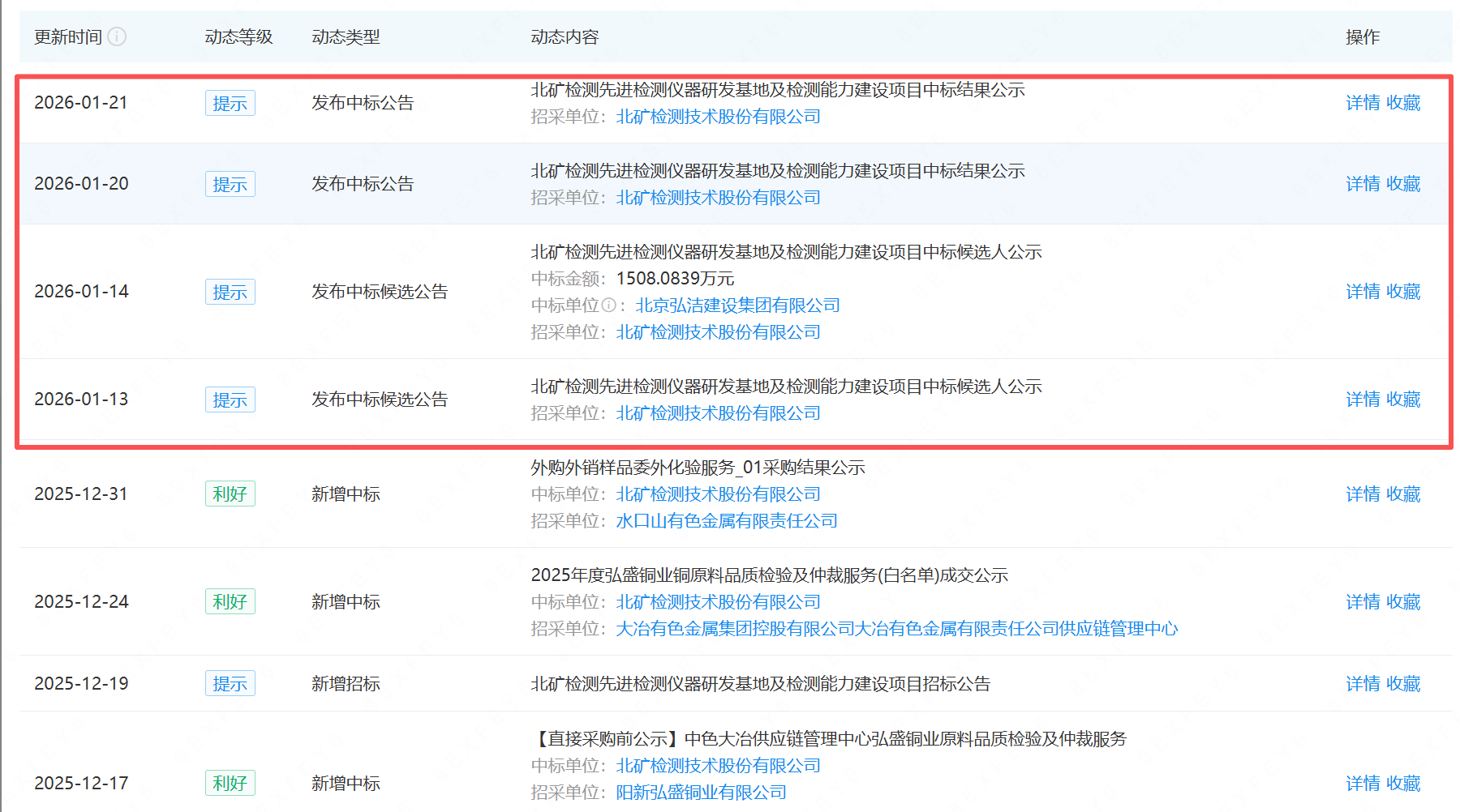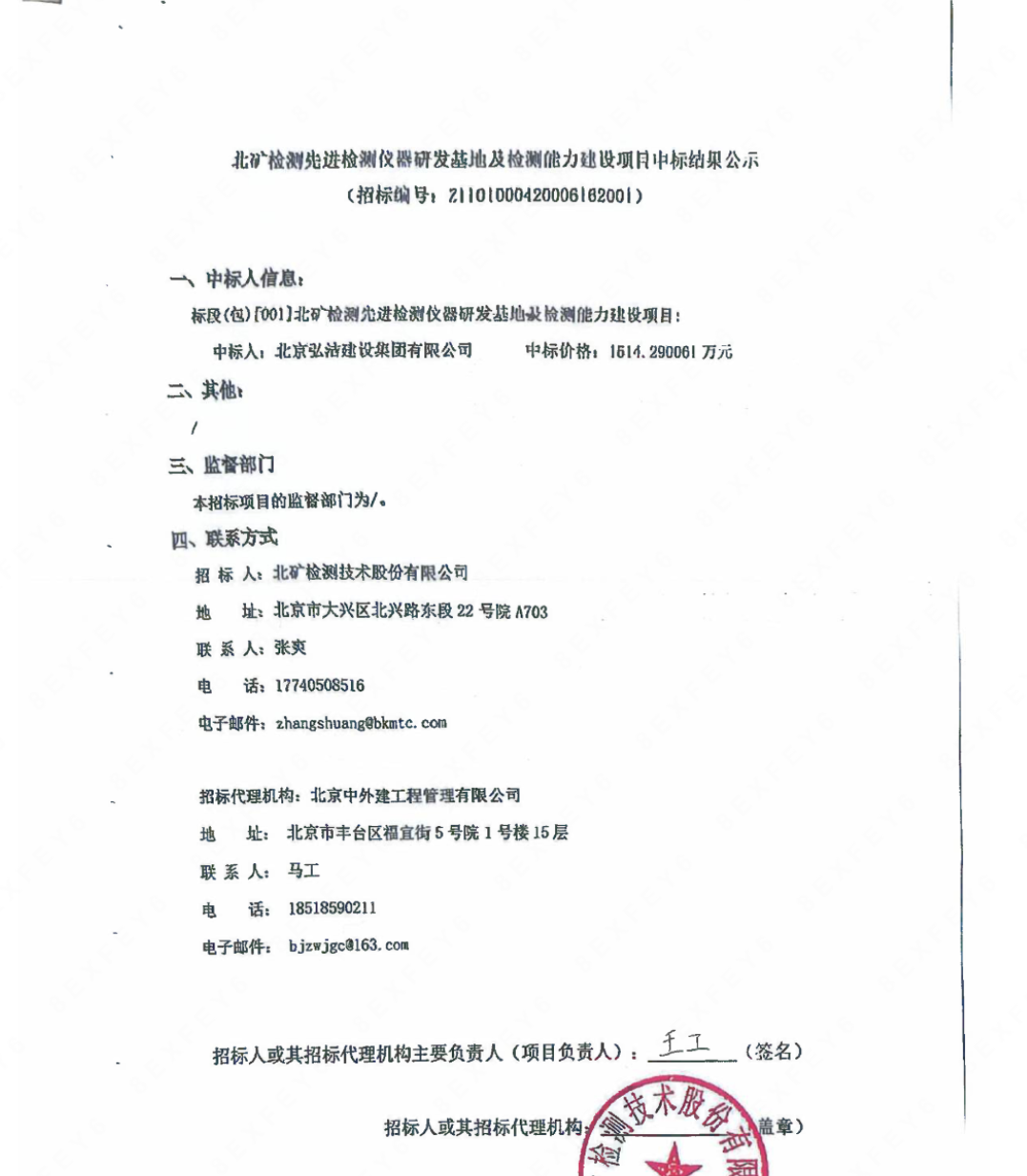 北矿检测先进检测仪器研发基地及检测能力建设项目中标结果公示 开始扩大生产了