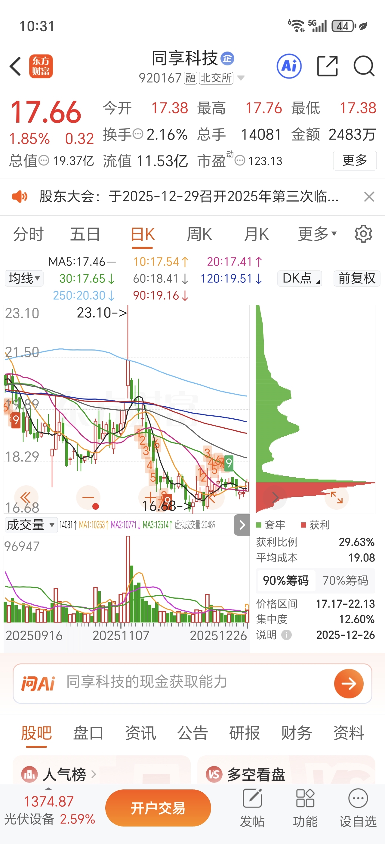 $同享科技(SZ920167)$ 光伏会是跨年行情的主线,今天量价齐升,还在低位快快捡钱