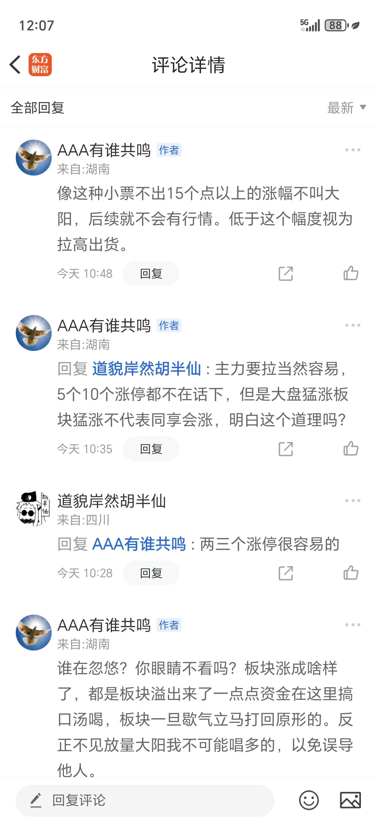 郑重声明:用户在财富号/股吧/博客等社区发表的所有信息(包括但不限于文字、视频、音频、数据及图表)仅代表个人观点,与本网站立场无关,不对您构成任何投资建议,据此操作风险自担。请勿相信代客理财、免费荐股和炒股培训等宣传内容,远离非法证券活动。请勿添加发言用户的手机号码、公众号、微博、微信及QQ等信息,谨防上当受骗!