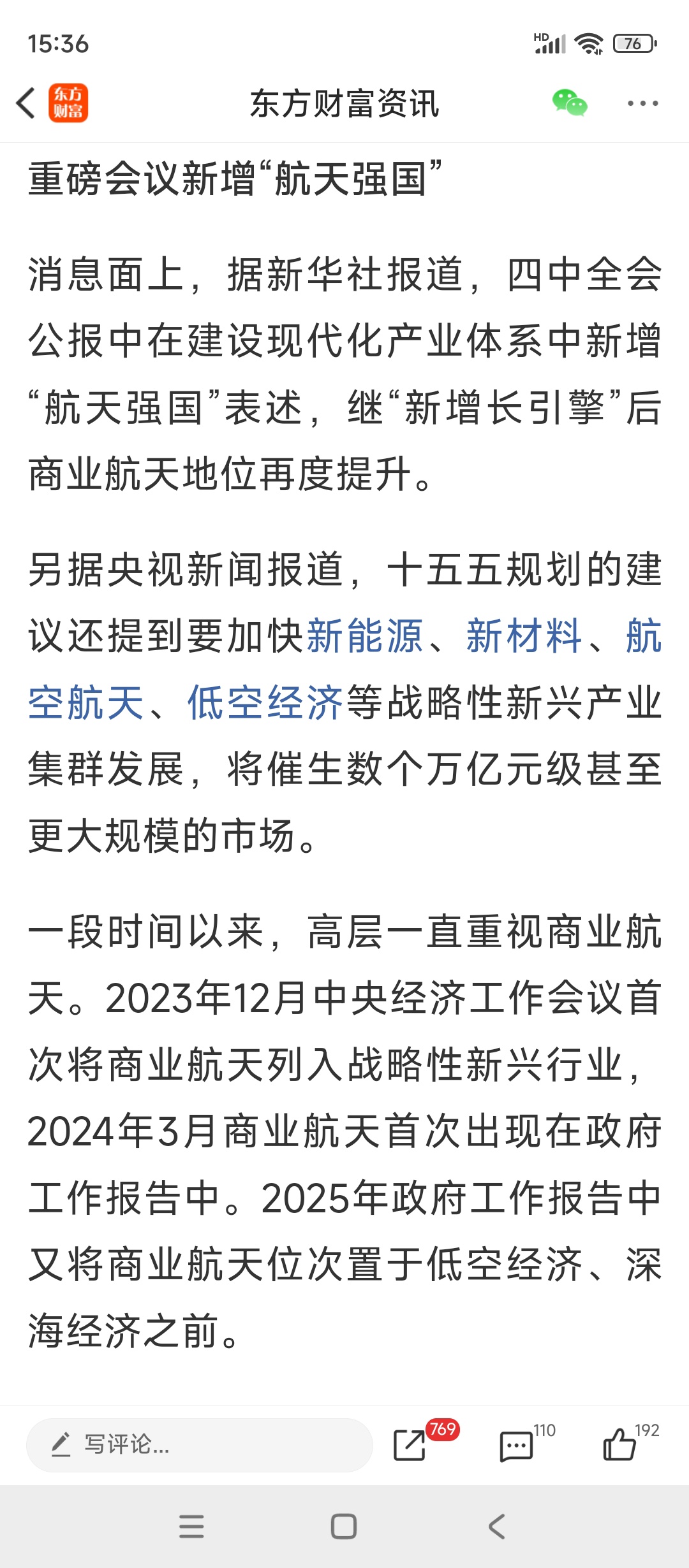 军工航天+成飞+核电+风电+铁路基建+十五五规划+重磅会议新增“航天强国”7.8