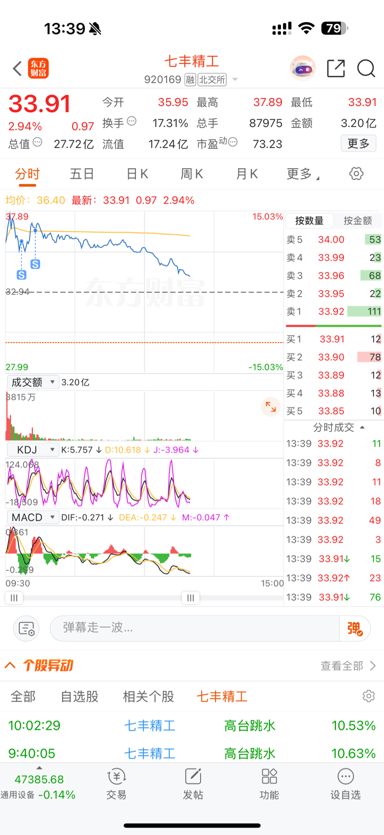 $七丰精工(SZ920169)$ 冲高卖就是对的