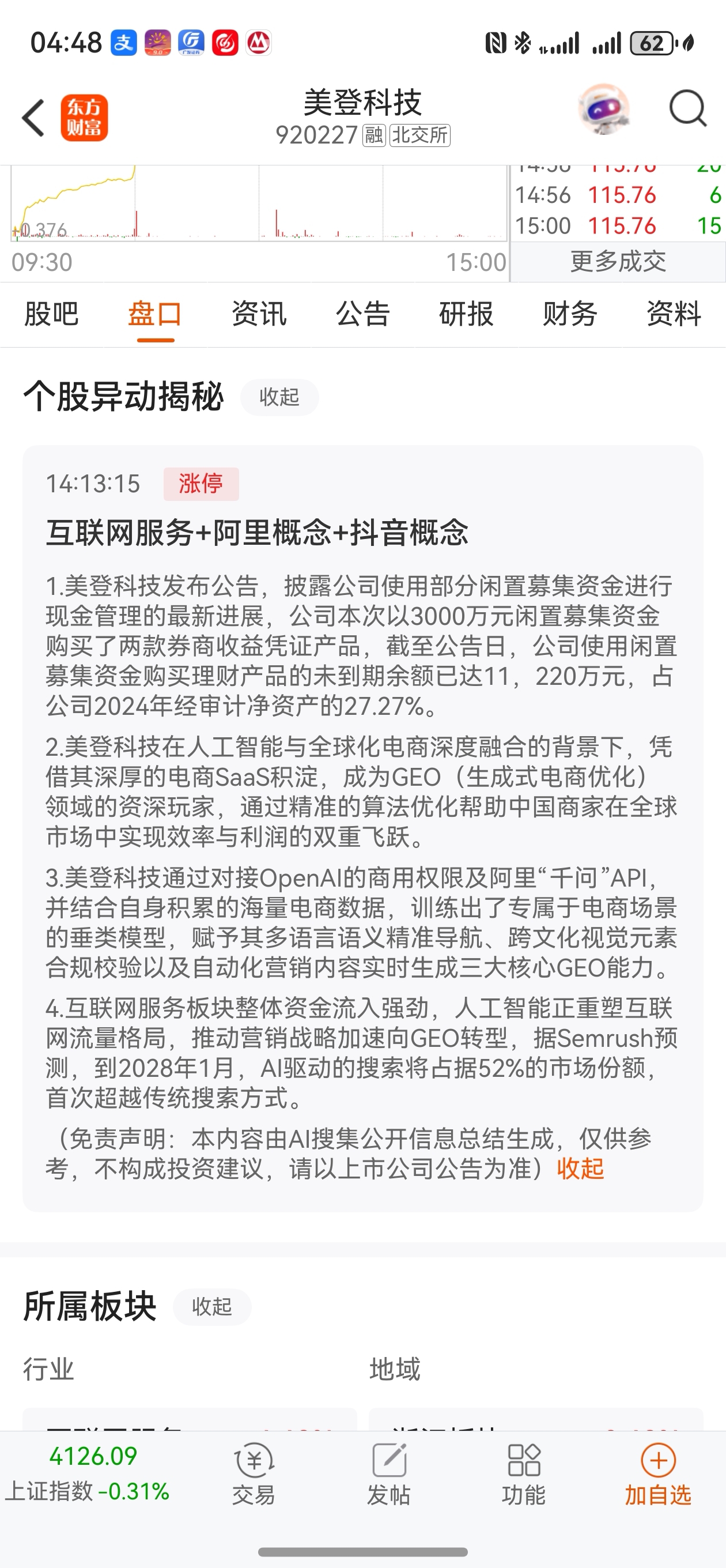 $美登科技(SZ920227)$ 互联网服务+阿里+抖音+江浙