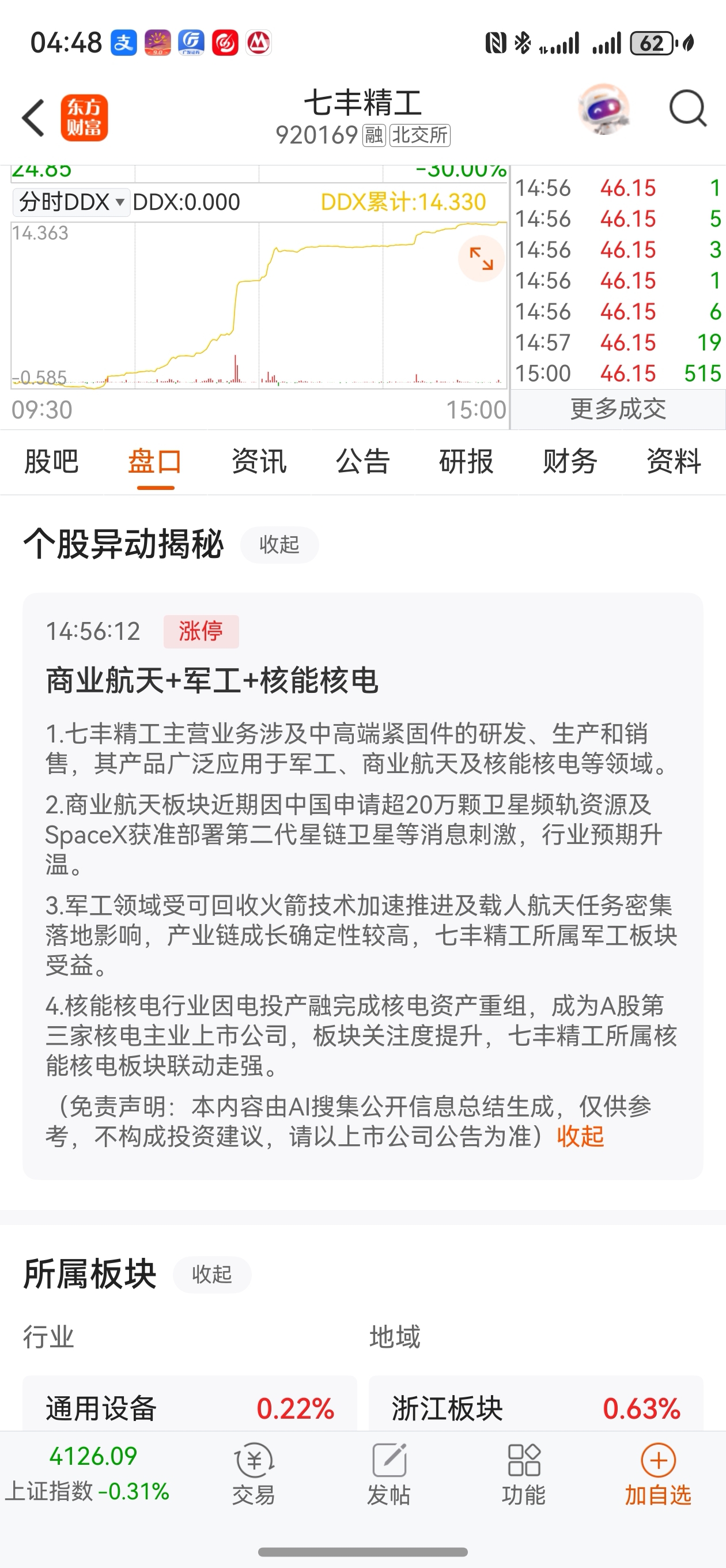 $七丰精工(SZ920169)$ 商业航天+军工+核电+江浙