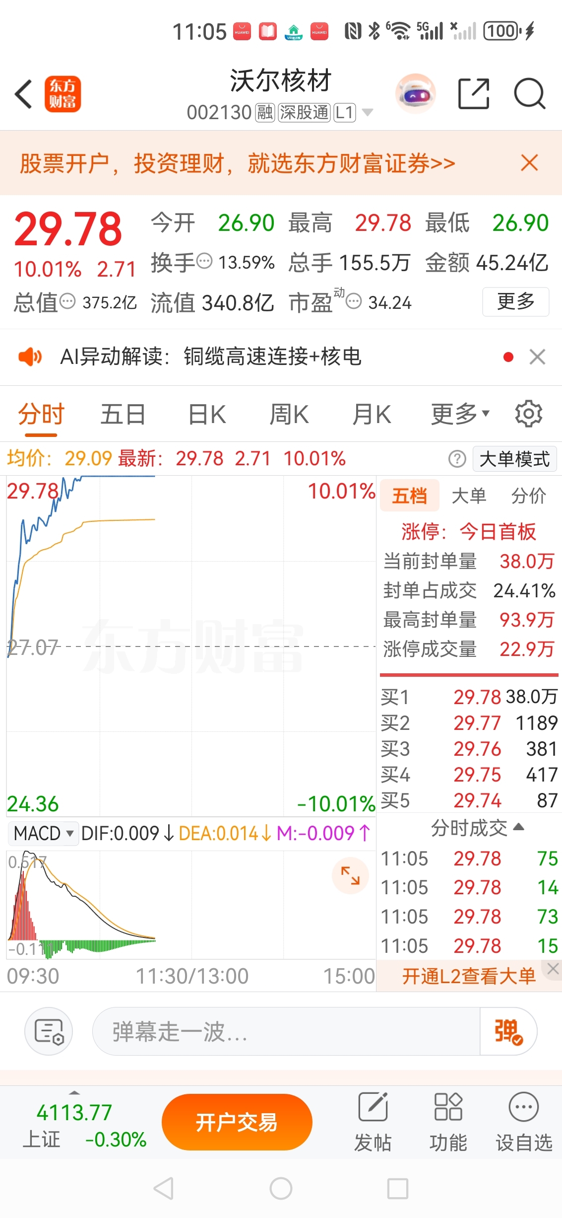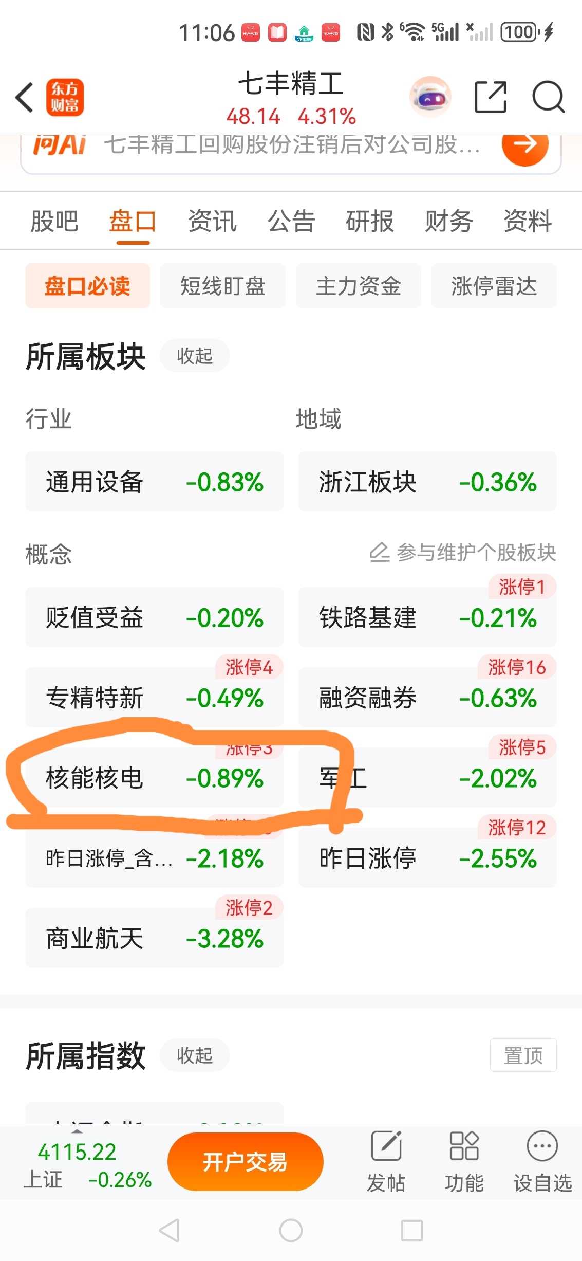 沃尔核材涨停,七丰精工正宗核概念股,见下图