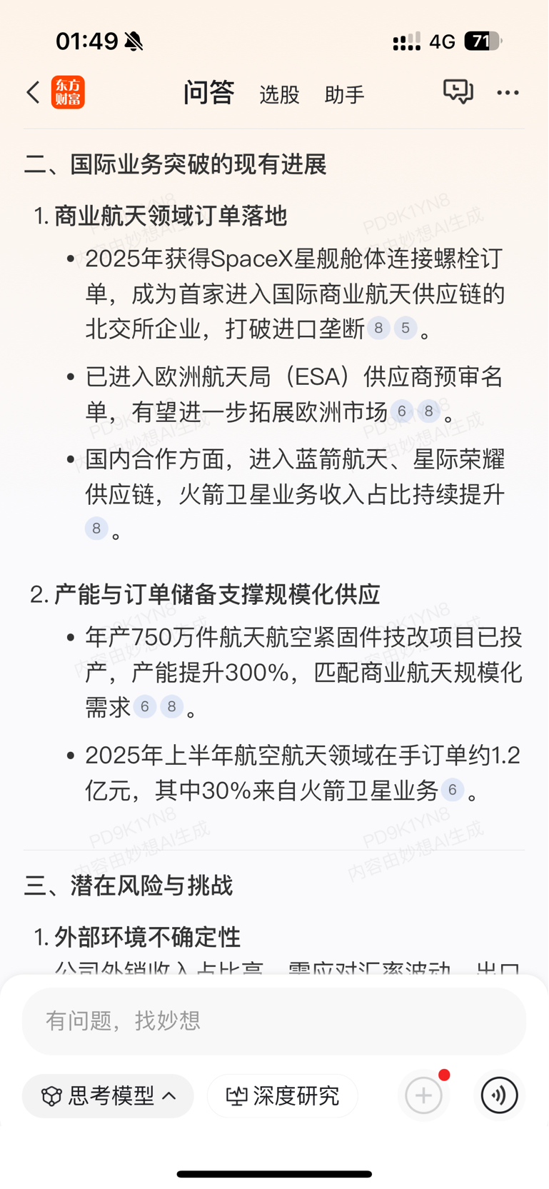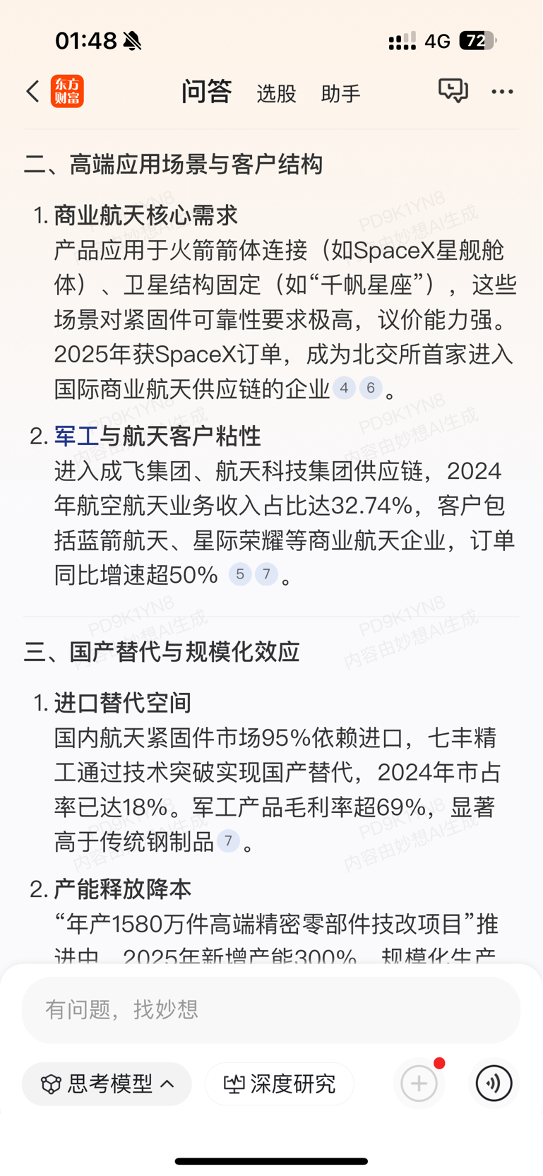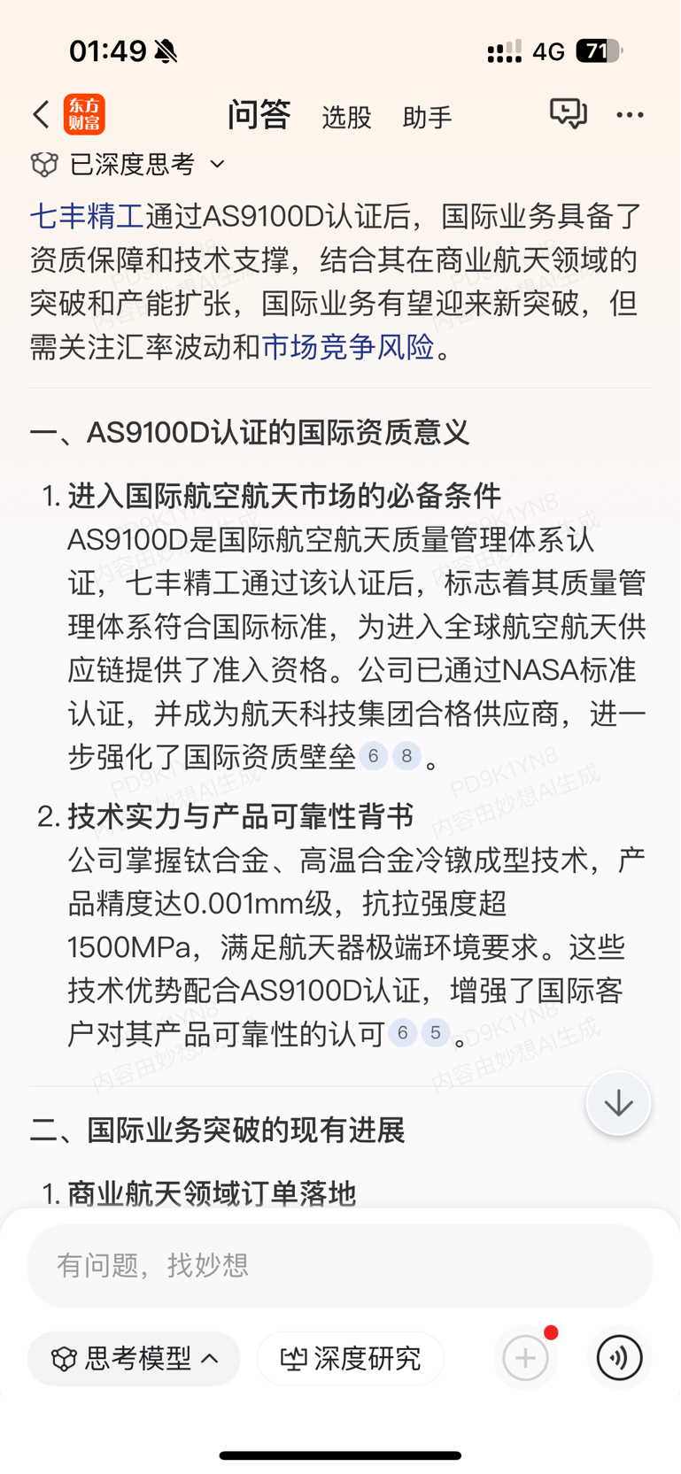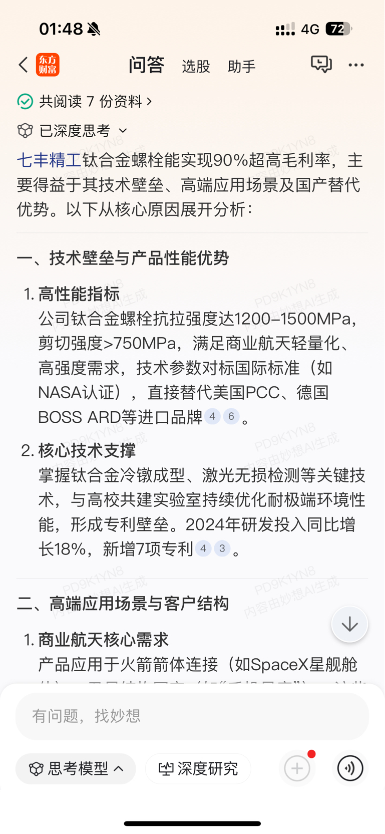 $七丰精工(SZ920169)$ 工业之米,太牛逼了!商业航天,人形机器人,国之重器等所有工业都可能涉及!