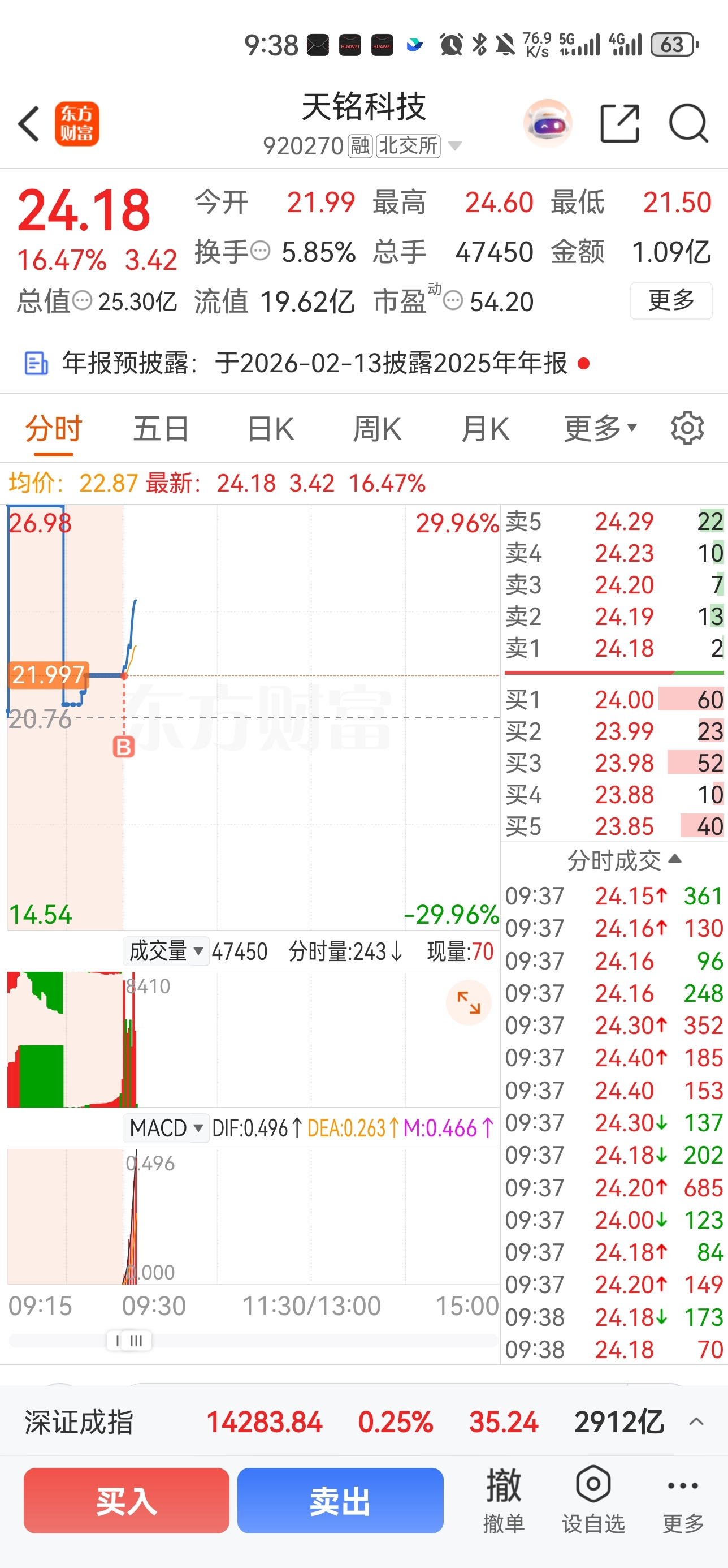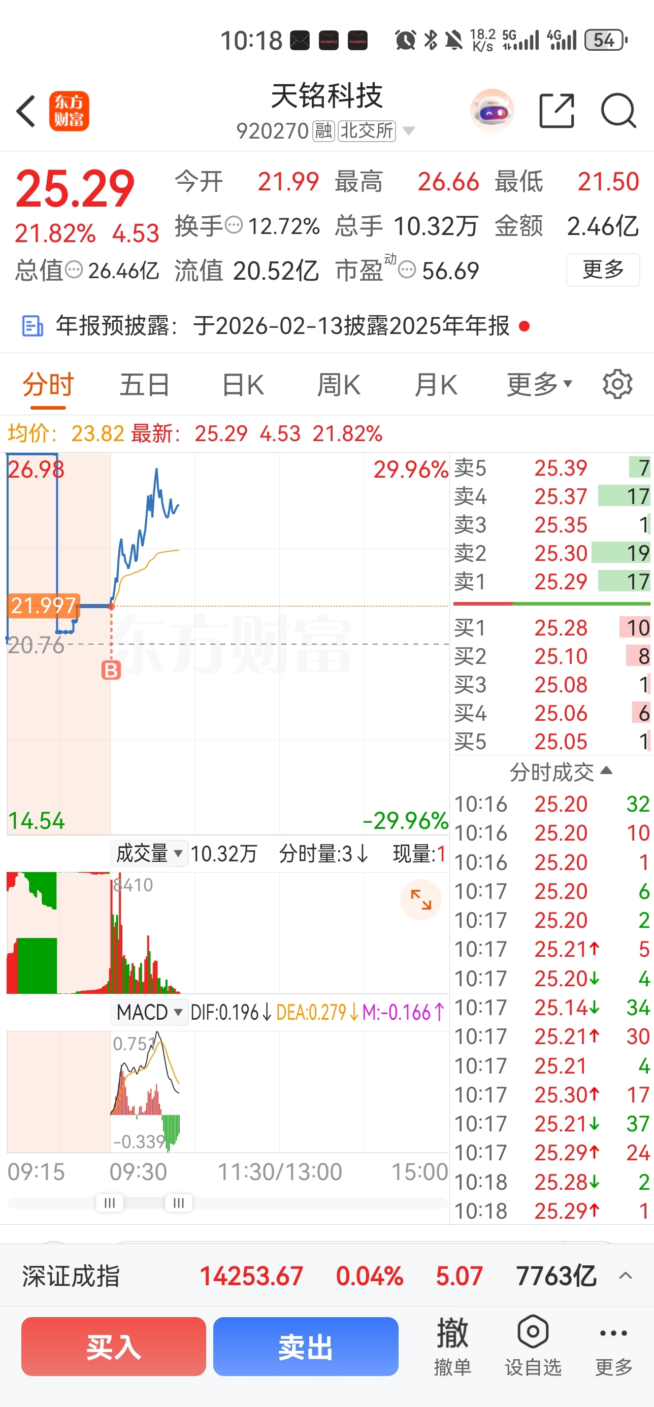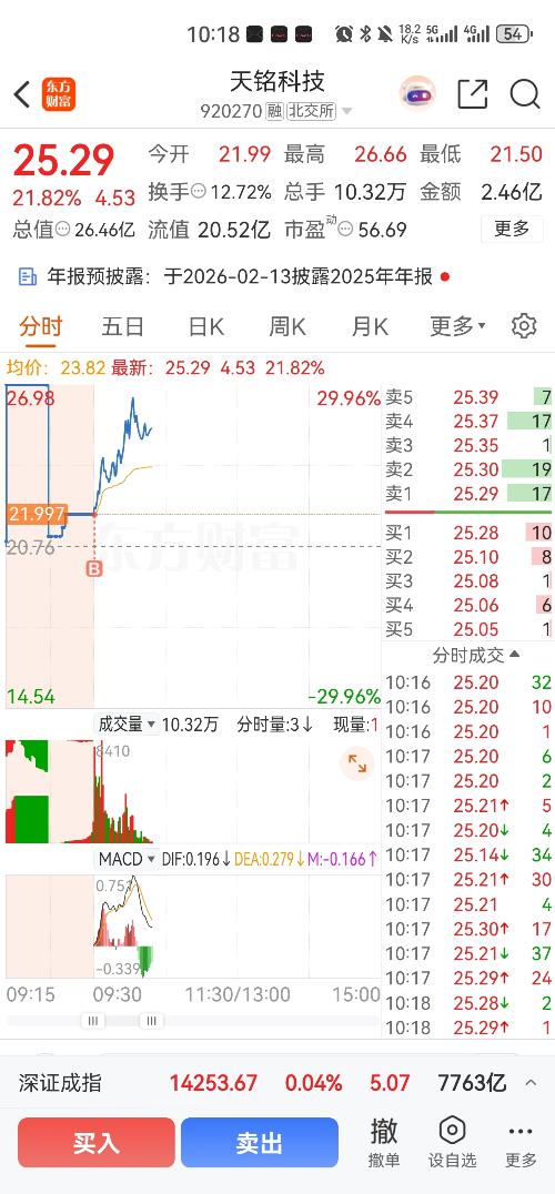 2、出来的三成仓9:25直接挂高买$天铭科技(SZ920270)$ 开盘无悬念,直接冲15%,成本不到6%~