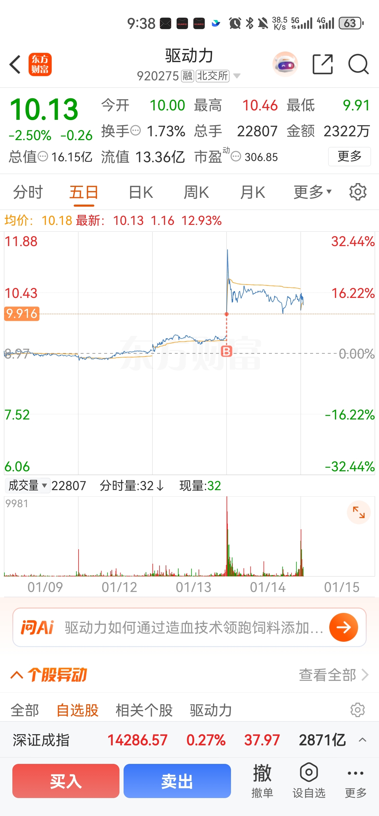 3、昨天集合竞价进的六成仓的$驱动力(SZ920275)$ 上影线,再给一天机会,暂时不动等反包!只剩一丢丢利润垫了,加油!