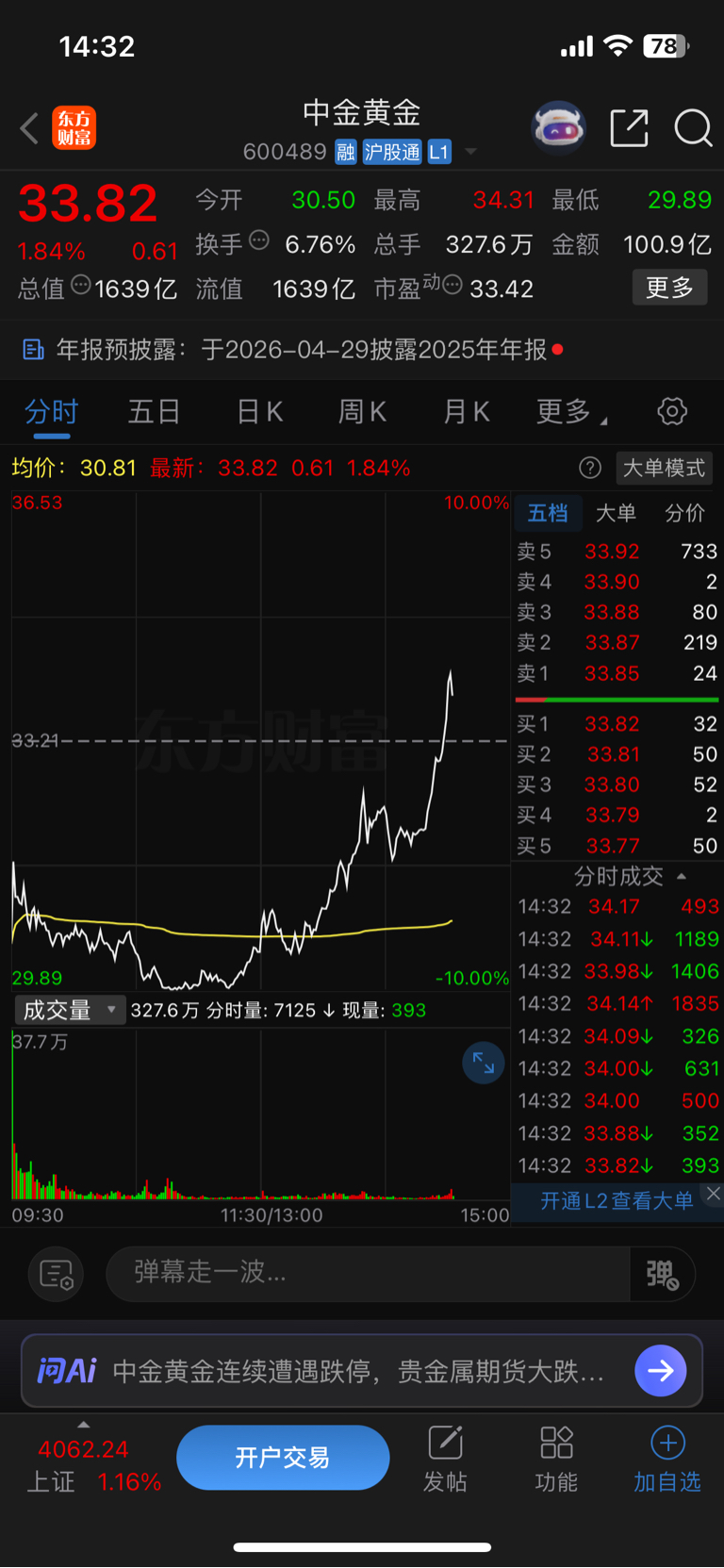 今天上午买黄金的人一天都挣了12个点了,恶心票志晟被大家甩几条大街了一天一天越来