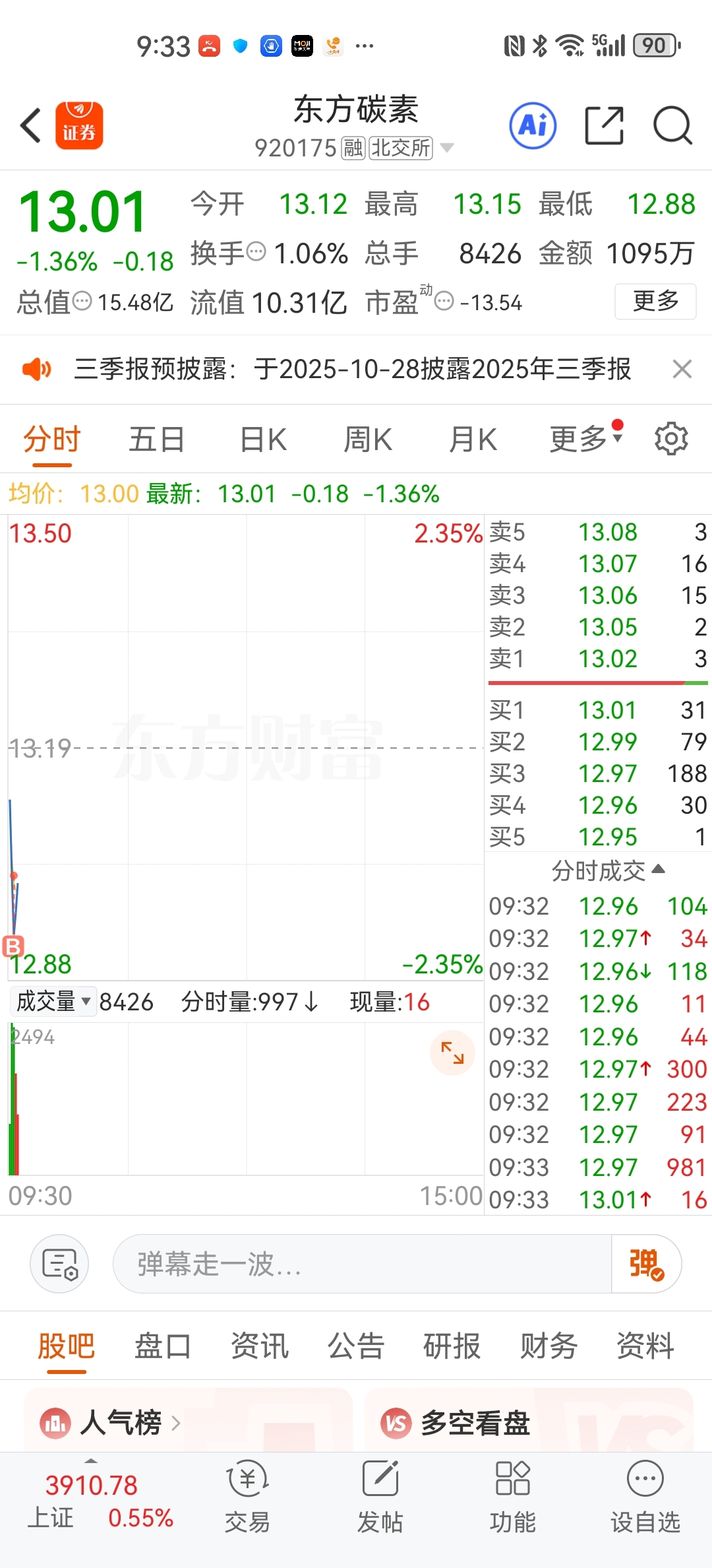 $东方碳素(SZ920175)$ 又被套咯#炒股日记#