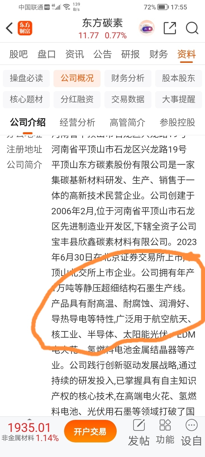 $东方碳素(SZ920175)$ 公司简介里,石墨烯产品应用于航空航天及核工业和半导体等!