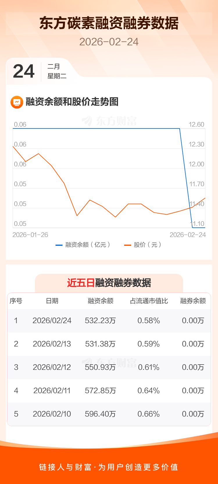交易所最新数据显示,东方碳素于2026年2月24日获融资买入8.14万元,融资偿还7.29万元,当日融资净买入8494元。目前,该股融资余额532.23万,占流通市值比例为0.58%。