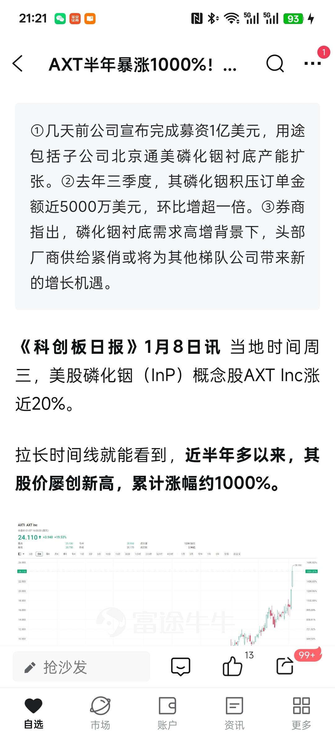 $凯德石英(SZ920179)$ 凯德石英的合作公司,北京通美母公司股价半年从1.23涨到25块多,整整20倍